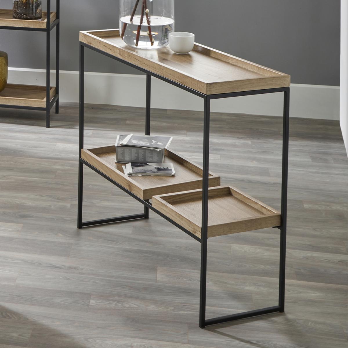 The Natural Wood Veneer and Black Metal 2 Shelf Unit combines elegance and functionality, featuring a beautiful design that enhances any interior space. Crafted with high-quality natural wood veneer, the unit showcases a warm, inviting finish, while the sturdy black metal frame provides durability and modern appeal. Ideal for displaying books, decorative items, or plants, this versatile shelf unit seamlessly fits into living rooms, offices, or entryways, making it a perfect addition to contemporary decor.