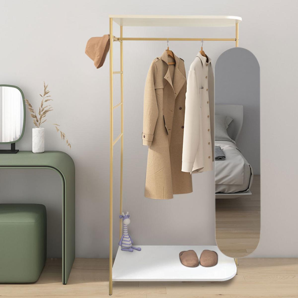 Comprised of high-quality metal cube frame, strong and sturdy design, truly made to last. High-end thickened glass mirror, which provides a clear distortion-free reflection, and eliminate the common reflective distortion of low-end mirrors, opening up your otherwise smaller spaces and bringing in dimension, gives you the best visual experience. Extra storage design, the bottom shelves could be uesd to storage shoes and bags, or other knick knacks. Help you eliminates the messy in hallway, organize your daily articles in order, refresh your lovely home. Great for laundry room, bedroom, outdoor drying or student dormitory.