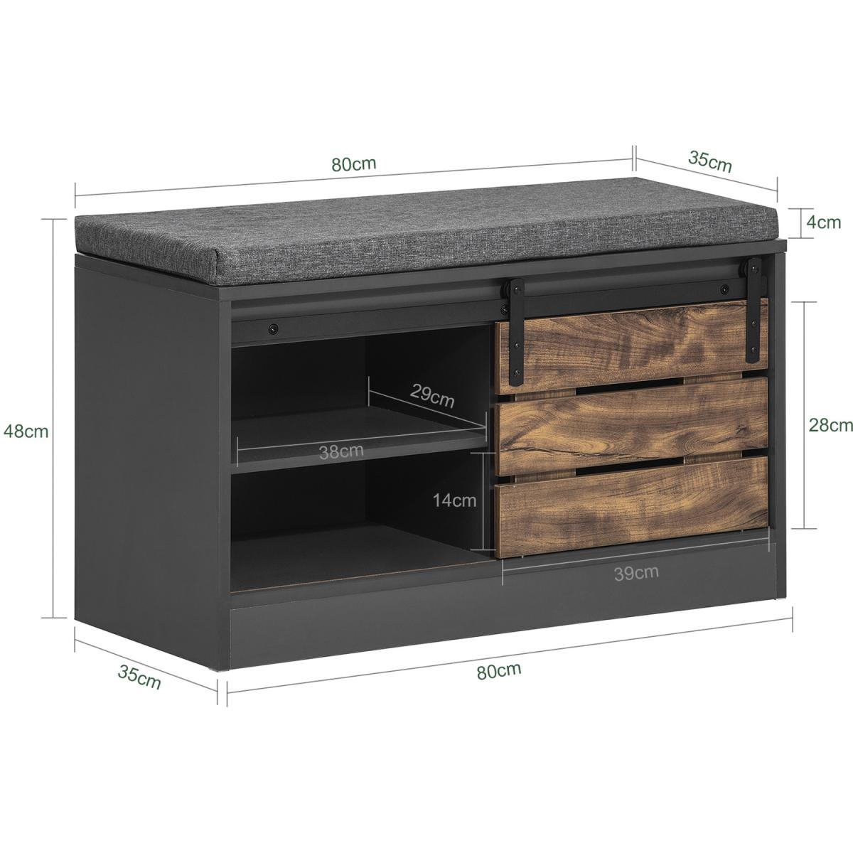 Modern design shoe cabinet shoe bench, good choice for your hallway and living room while offering storage solution as well as extra seating space. The padded seat which is removable is ideal for comfortable sitting while putting on and taking off shoes. Contains 2 compartments beneath seat area, with 2 tiers in one compartment, providing ample storage space for you. The sliding door also allows you to nicely hide your shoes and items in one compartment while show the shoes you want to show in another compartment. This shoe rack will keep your halls and entryway organized as well as distinctive. Item comes in a flat pack and requires self-assembly. Detailed instructions supplied. The decorative elements are not included in the delivery.