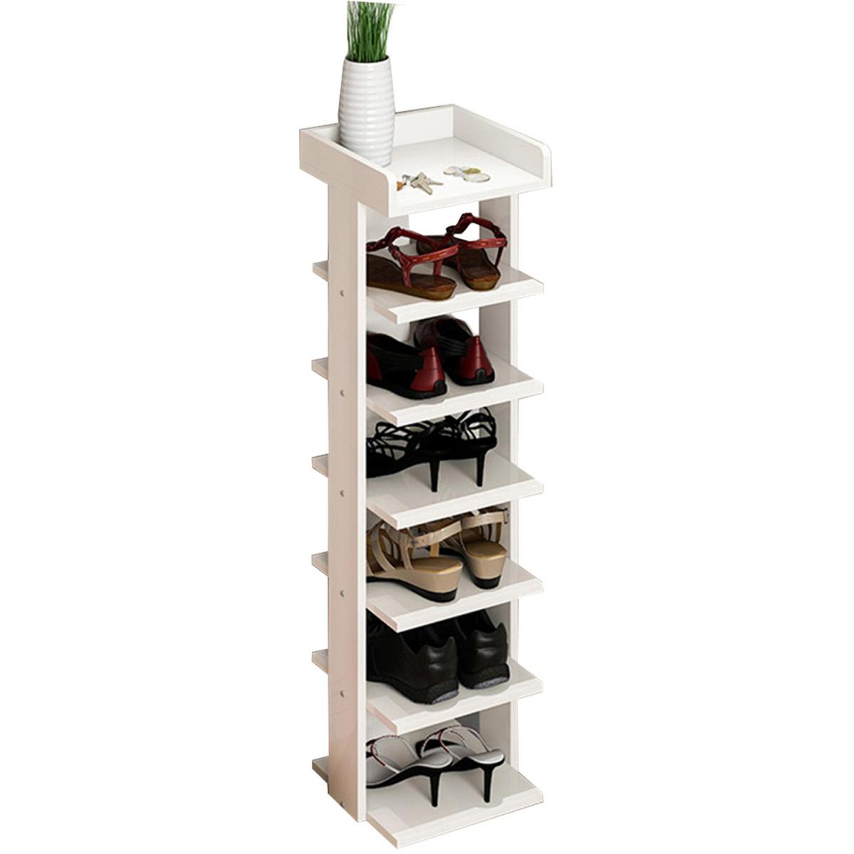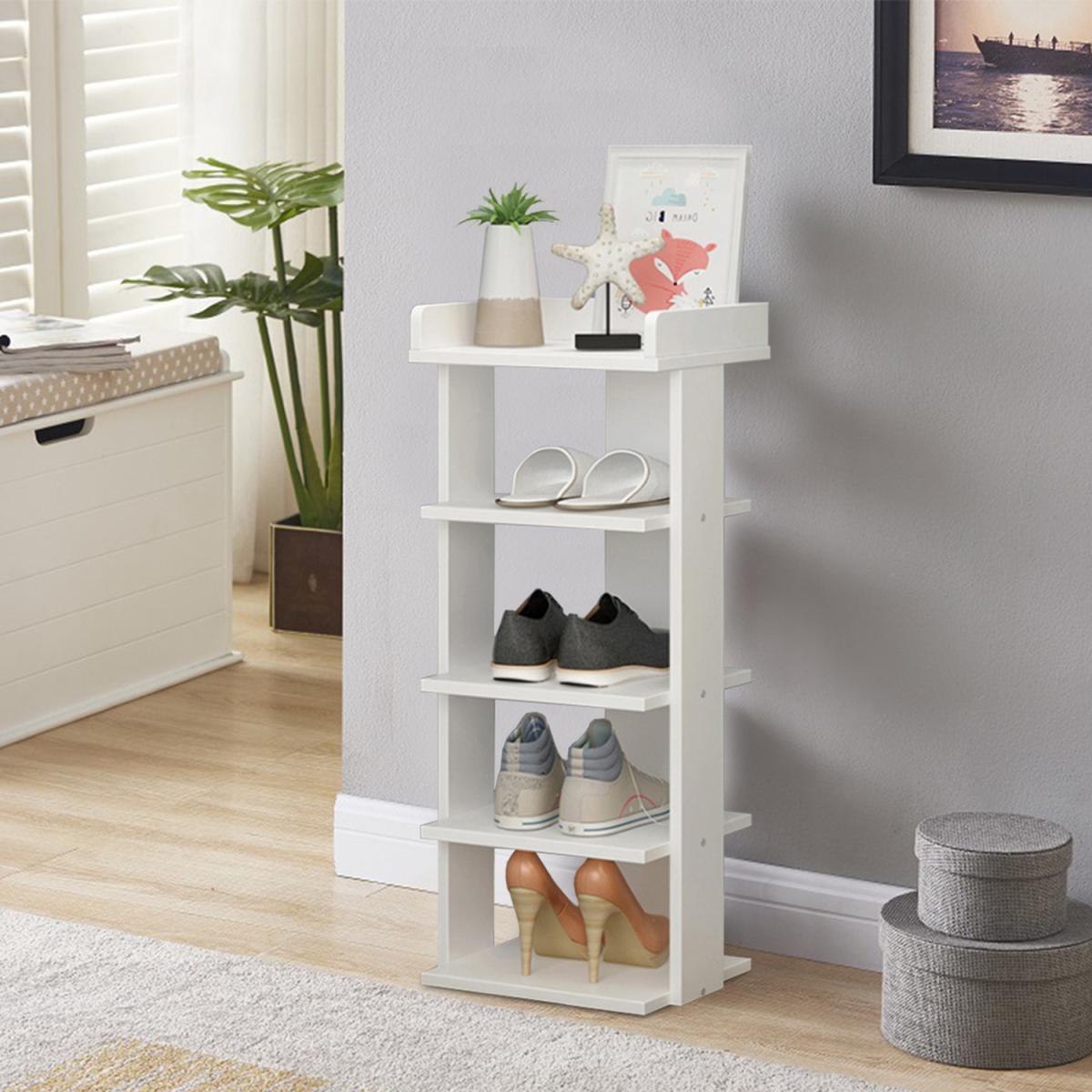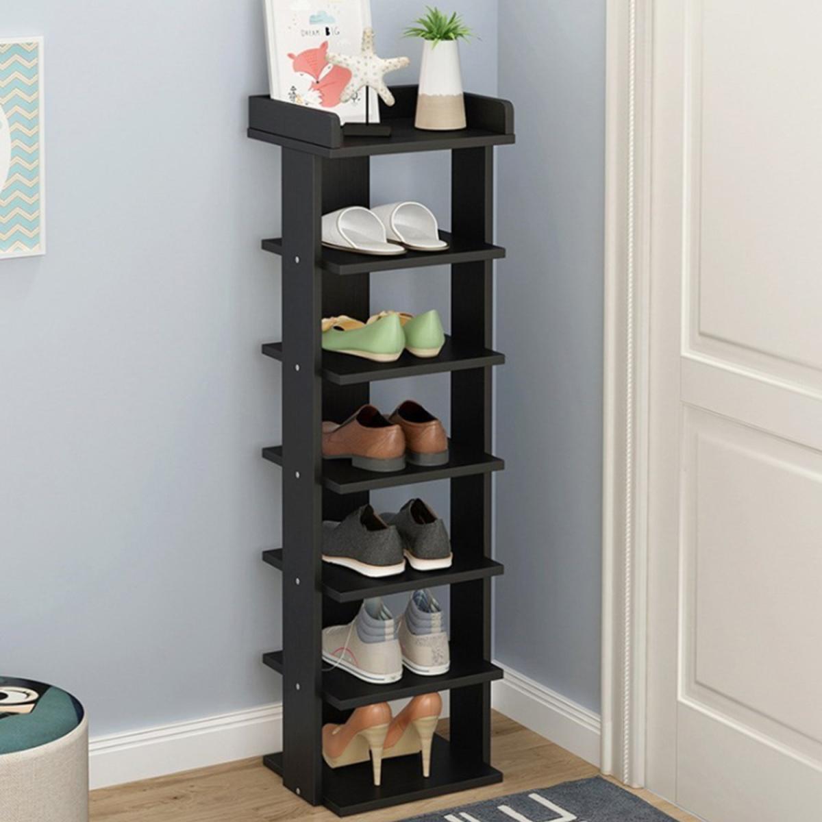 Designed with a modern appearance, fits to almost your wooden furniture. Made from Particleboard, which is friendly to environment and safe, features with great stability and not easy to deformation. It is available for long time use and it also can be recycled use and will not cause harm to environment. Your normal heels and ankle boots can easily fit on this elegant wooden shoe rack. You can remove a layer to fit boots, high heels without bending the shoe's back. This rack is not only for shoes, but also be used for bags, toys, towels, sundries, books, plants and small accessories. This modern shoe rack will keep your entryway, closet or garage neat and tidy. Small shelves free standing are easy to install and do not require any screws. Even if you do not have huge DIY skills, you can assemble this shoe rack effortlessly.