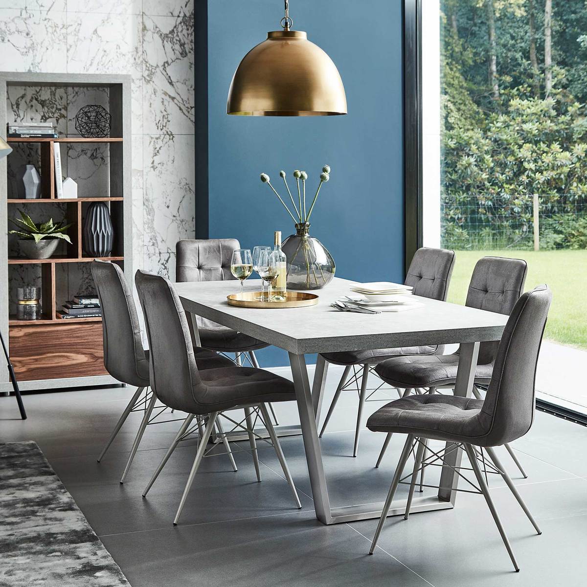 Simplistic in style and practical in design, the Halmstad Dining Table will give your dining room a stunning industrial look. Sleek brushed stainless steel legs are topped with a contemporary concrete effect top. The table seats 4 to 6 people, giving you plenty of space to entertain.
