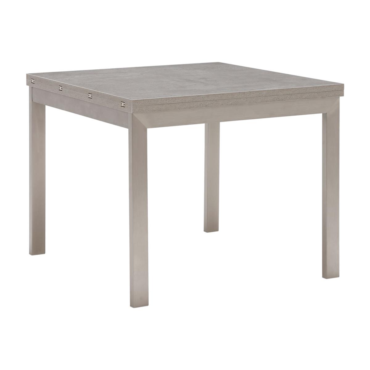 Design. Featuring a concrete look top and brushed stainless steel legs, the Halmstad flip top table offers a simplistic and practical design. Its square to rectangle motion is the perfect space saver, boasting a compact space ideal for groups of two or four. This easily expands with a lift and slide motion to suit a larger family of six and for times spent entertaining extra guests. Sure to provide your dining room with a stunning industrial look, the Halmstad is the optimum in style and convenience.