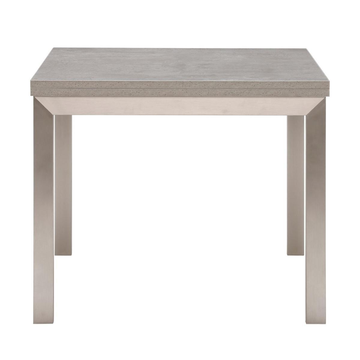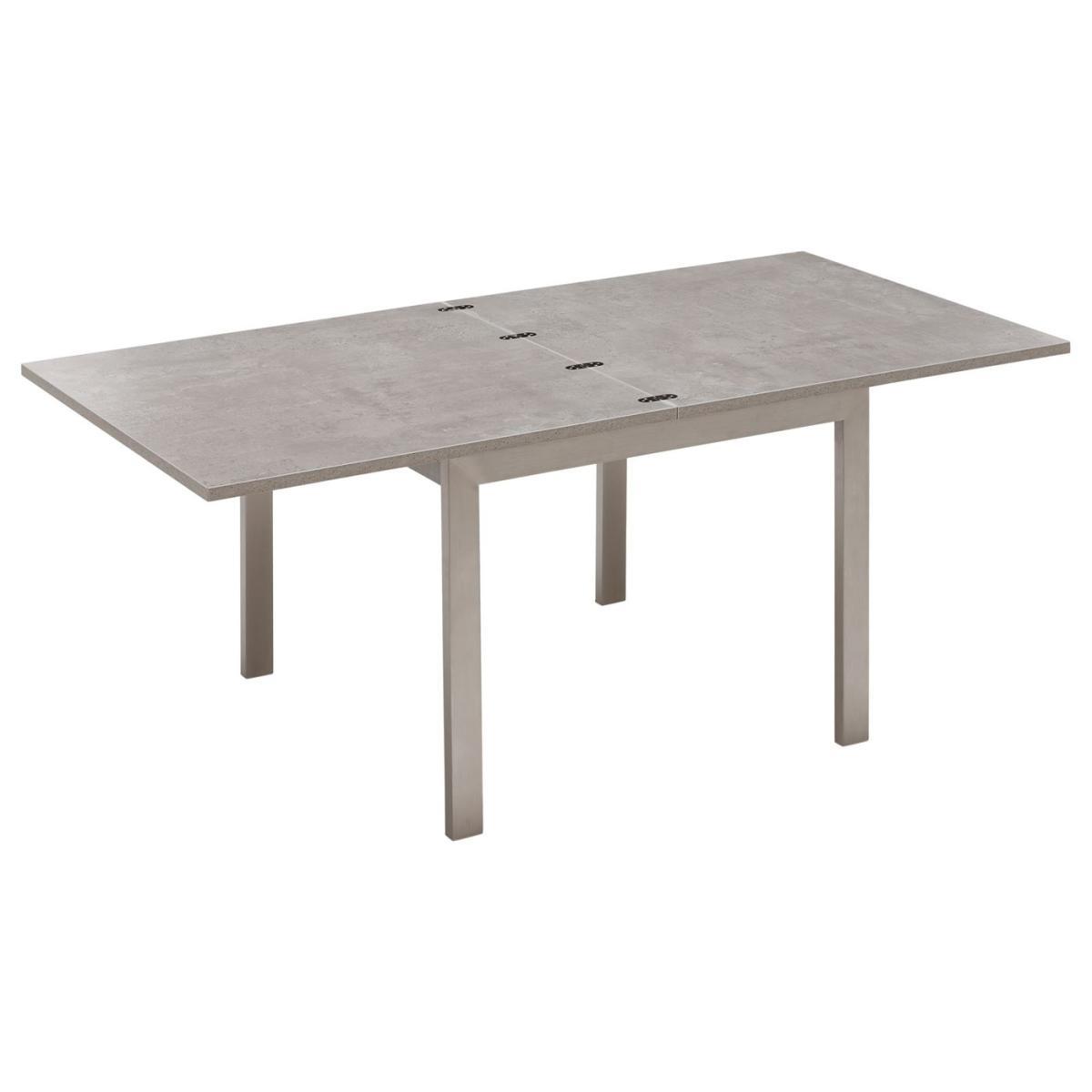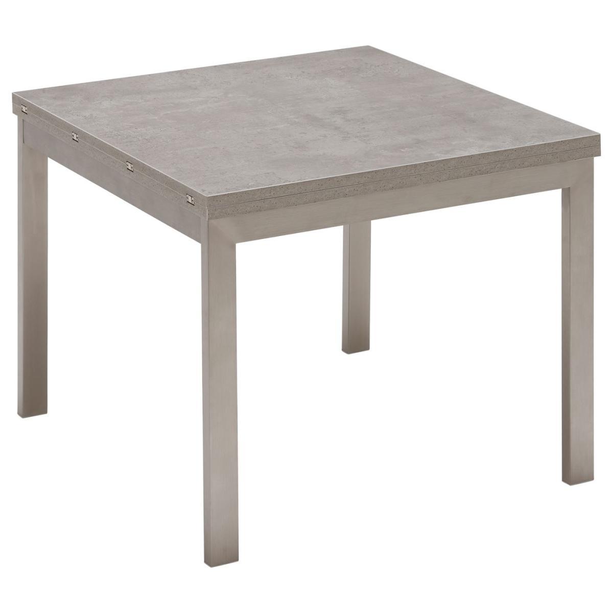Design. Featuring a concrete look top and brushed stainless steel legs, the Halmstad flip top table offers a simplistic and practical design. Its square to rectangle motion is the perfect space saver, boasting a compact space ideal for groups of two or four. This easily expands with a lift and slide motion to suit a larger family of six and for times spent entertaining extra guests. Sure to provide your dining room with a stunning industrial look, the Halmstad is the optimum in style and convenience.