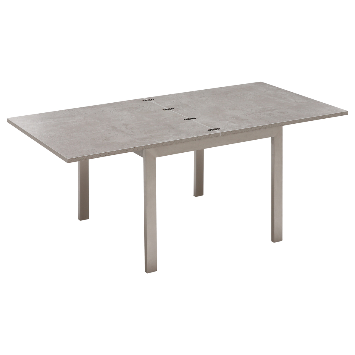 Featuring a concrete look top and brushed stainless steel legs, the Halmstad flip top table offers a simplistic and practical design. Its square to rectangle motion is the perfect space saver, boasting a compact space ideal for groups of two or four. This easily expands with a lift and slide motion to suit a larger family of six and for times spent entertaining extra guests. Sure to provide your dining room with a stunning industrial look, the Halmstad is the optimum in style and convenience.