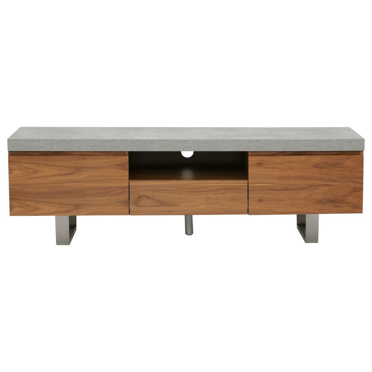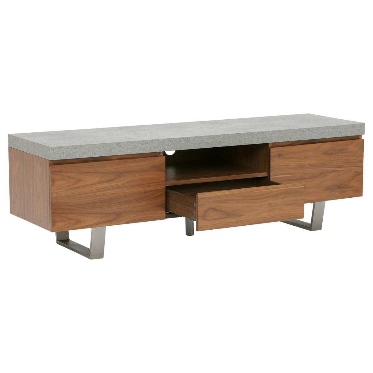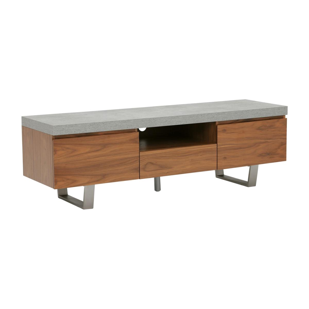 Design. Add a touch of industrial glamour to your home with this gorgeous Halmstad Large TV Stand. Its walnut veneer cabinet surface contrasts beautifully against the neutral grey-toned top and stainless steel legs.