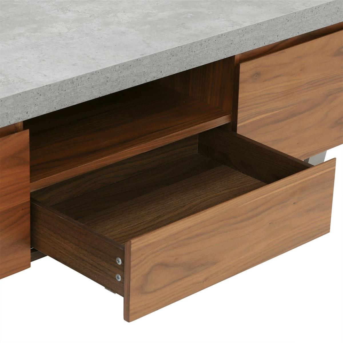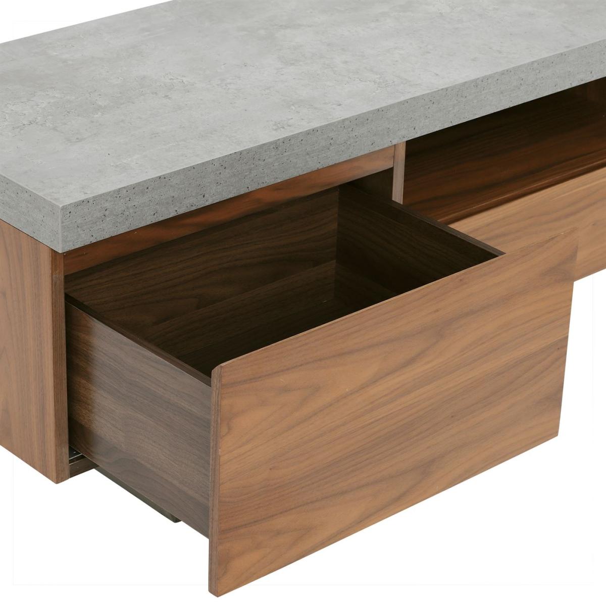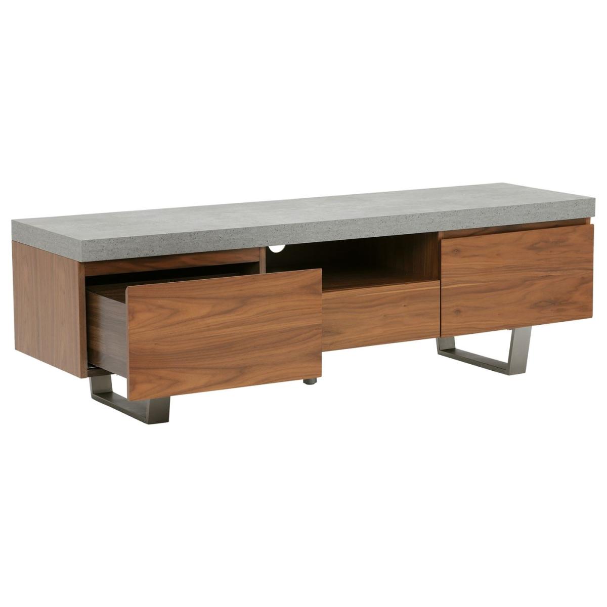 Design. Add a touch of industrial glamour to your home with this gorgeous Halmstad Large TV Stand. Its walnut veneer cabinet surface contrasts beautifully against the neutral grey-toned top and stainless steel legs.