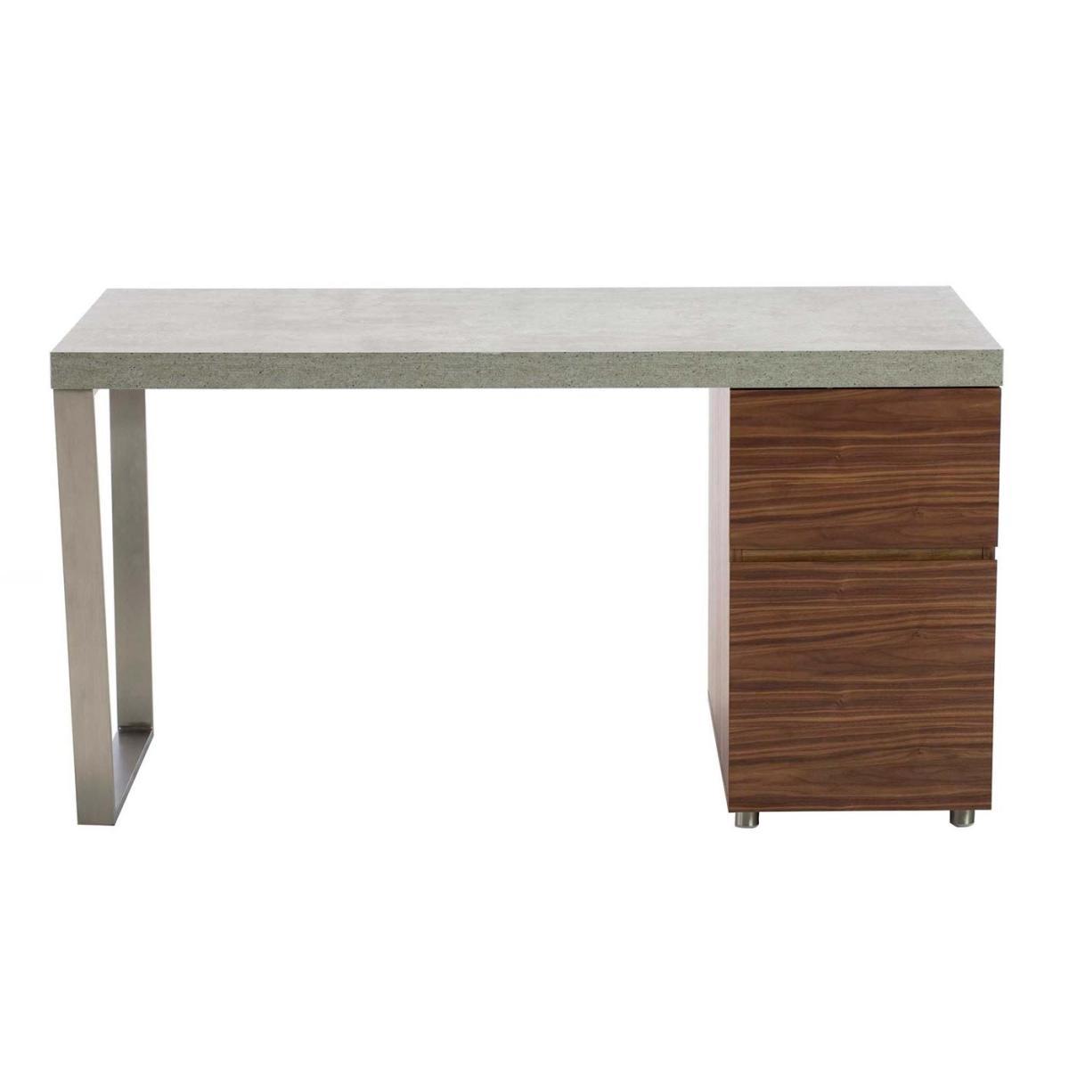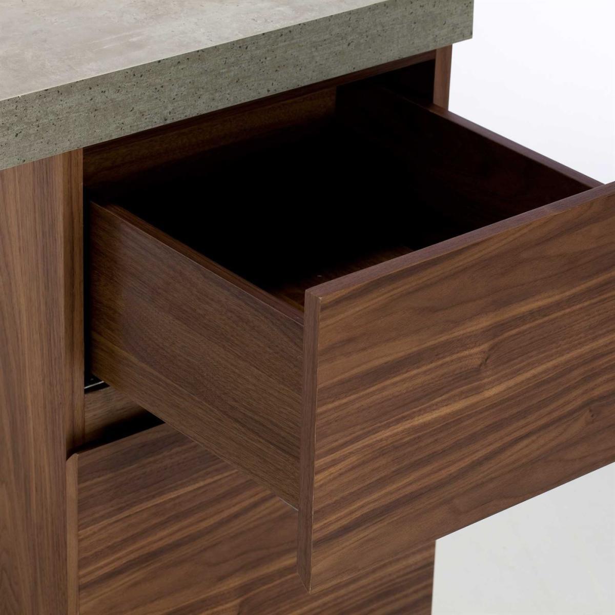 I love this desk because it strikes a excellent balance between utilitarian design and natural materials. The concrete top adds a modern, industrial edge, while the walnut drawer unit brings warmth and richness, making it versatile for both contemporary and eclectic interiors. It works particularly well in minimalist or Scandinavian-inspired spaces, where the clean lines and neutral palette can really stand out. For styling tips, consider pairing it with streamlined accessories and neutral-toned seating for a cohesive look, or add colourful accents on the tabletop to inject personality without overwhelming the design. Its practicality is also worth noting-understated yet functional, perfect for creating a stylish work area that fits seamlessly into your home decor.