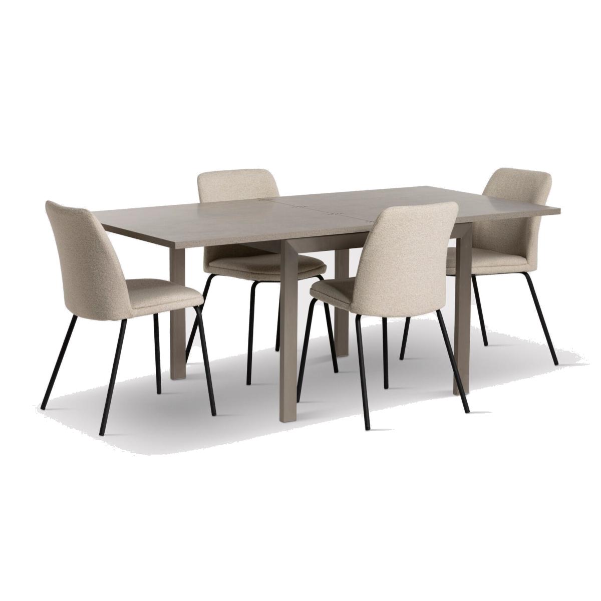 The Concrete Effect 90-180cm Flip Top Extending Dining Table and 2 Aria Beige Fabric Dining Chairs set blends raw beauty with refined comfort. The Halmstad table, with its concrete-look top and brushed stainless steel legs, transforms from an intimate square to a welcoming rectangle - perfect for anything from quiet dinners to lively gatherings. Its fluid lift-and-slide mechanism makes hosting effortless. Paired with the Aria chairs, wrapped in soft beige fabric and cradled by sleek powder-coated frames, this set offers more than practicality. It invites moments, memories, and conversations - where form meets function, and every meal feels a touch more poetic