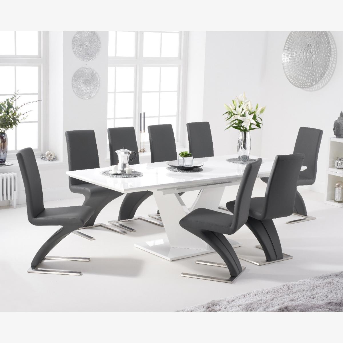 Halo 160cm White High Gloss Extending Dining Table With 8 Grey Hampstead Faux Leather Chairs