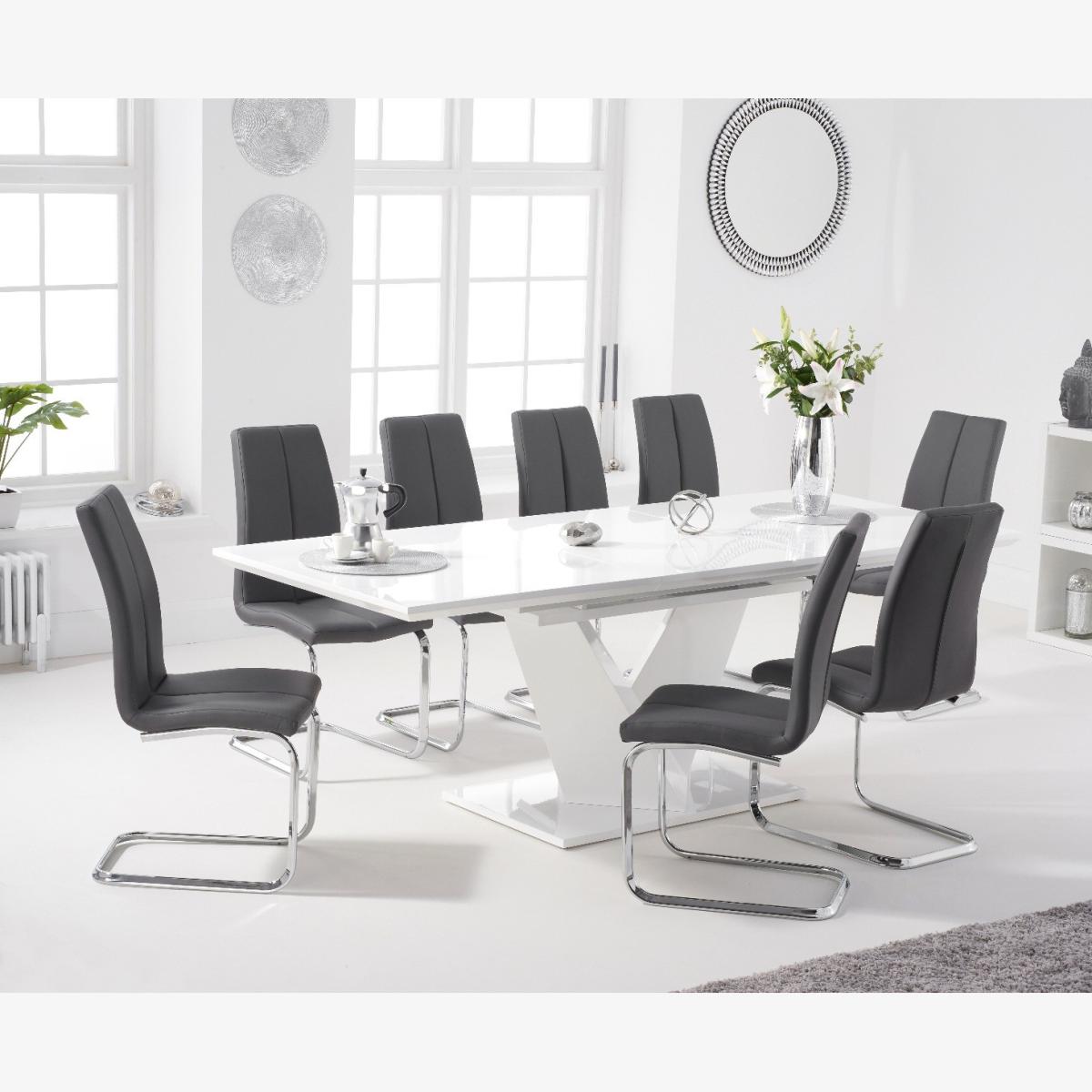 This table set strikes a great balance between modernity and practicality, making it a versatile choice for a variety of interiors. I love its sleek high gloss finish, which adds a touch of sophistication, while the extending feature offers flexibility for hosting larger gatherings. The grey faux leather chairs are not only stylish but also easy to clean, ideal for family life or entertaining. It works particularly well in contemporary or minimalist spaces thanks to its clean lines and neutral palette, but it can also be styled up with colourful table accessories or textured textiles for a more eclectic look. Practical tips include pairing it with a neutral or textured rug underneath to soften the space, and adding colour with vibrant crockery or placemats for a personalised touch. Overall, it’s a smart, adaptable addition that combines form and function seamlessly.