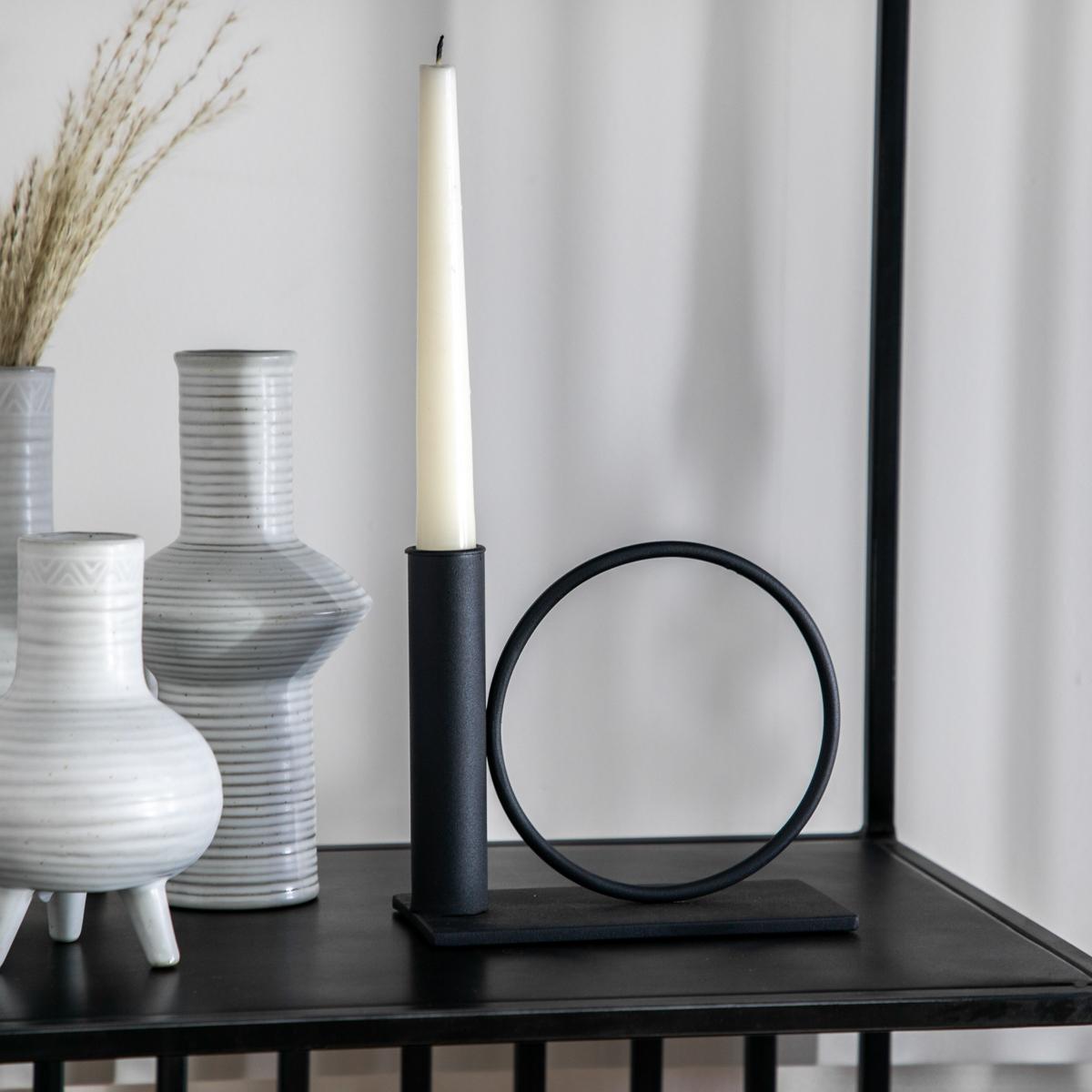 Your home will feel heavenly with the Halo Candlestick in Black, featuring a cool geometric design with a hoop and tube candlestick in a matt black finish, perfect for adding radiance to your home!