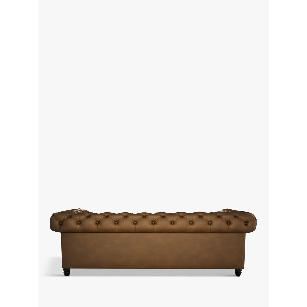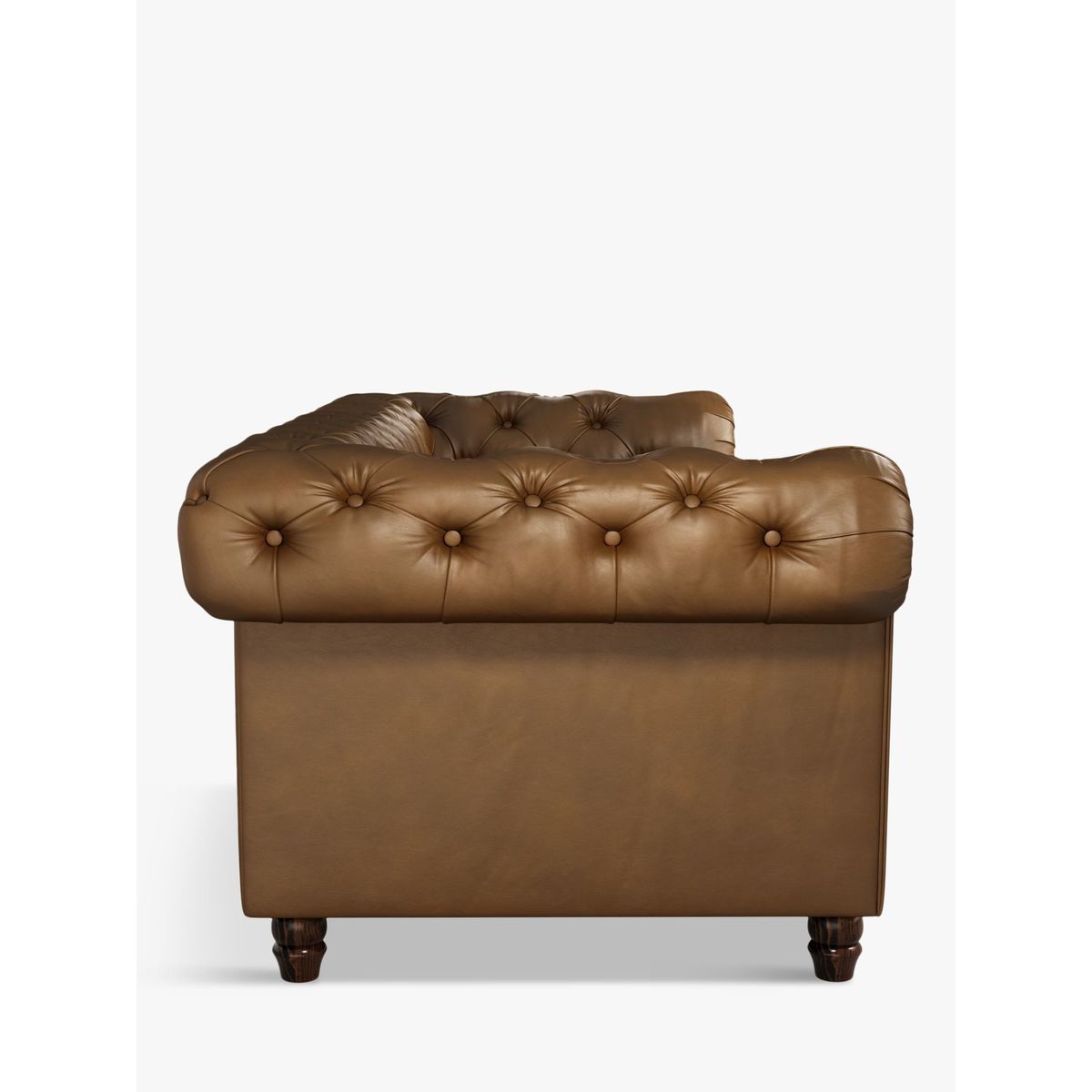 A classic Chesterfield sofa complete with luxurious scroll arms and button detail on the back and base. It's upholstered in an aniline leather for a soft and luxurious look that shows off the natural flaws of the material.