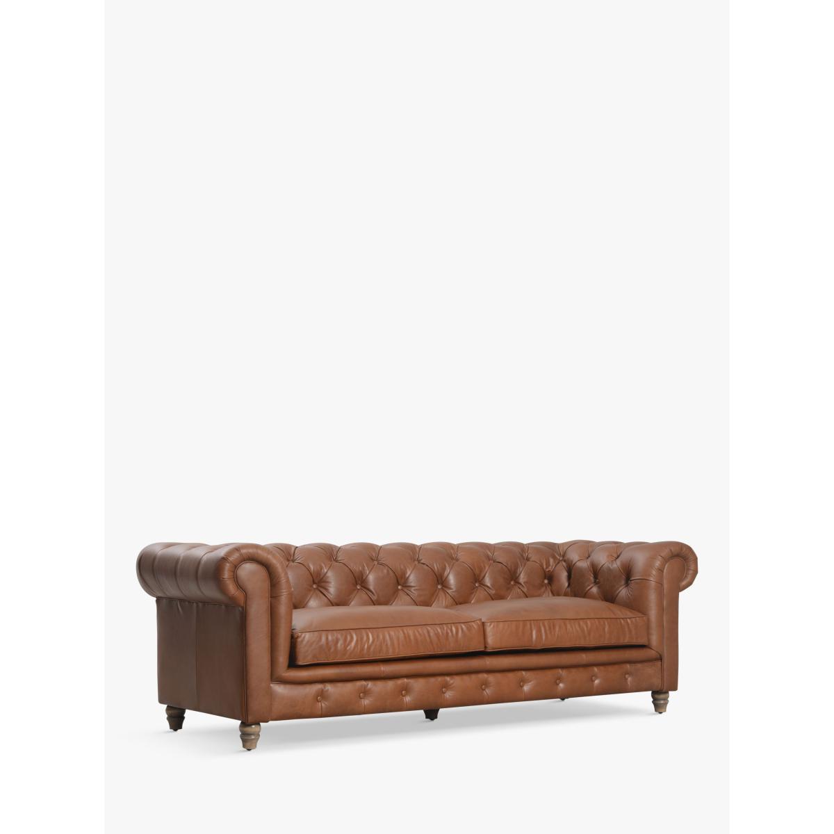 Product Information A beautiful take on the classic Chesterfield, Earle has gently scrolled, wide arms, a dramatic rolled back with button detailing and an extremely comfortable, deep sit. Aniline leather has been dyed to colour and sometimes features a thin, clear protective coating or no coating at all. It has the advantage of showcasing the natural beauty and texture of the leather for a stylishly rustic finish. Please note: not all our ranges are on display in our shops. Dimensions & Specifications 87081180 Access Dimensions - 255cm Assembly Required - Partial assembly required (legs) Brand - Halo Country of Origin - China Cover Type - Fixed Dimensions - H78 x W242 x D97cm Filling Composition - Seat: foam and fibre. Back: fibre Frame Construction - Dowels Frame Material - Birch Height of seat - 44cm Number of Legs - 5 Product Type - Sofas Reclines - NO Removable Cover - NO Removable legs - YES Suspension - Pocket sprung Weight - 86kg --- Delivery Information Delivery within 7 days This product is ready to be sent right away and is usually delivered within 7 days, depending on the postcode. Free UK mainland delivery Delivery to UK mainland locations is free. The evening before your chosen delivery day, we’ll let you know a 2-hour delivery window. Delivering your product Our delivery team will place the product in your chosen room, assemble it and take all packaging away. More about delivery & returns Interest Free Credit Interest free credit 0% APR 12 months Found the perfect sofa? We're offering 0% Interest Free Credit on selected Home products £1,000 and over Spread the cost Pay over 12 months for purchases of £1,000 and over , or 24 months for purchases of £3,000 and over. It's 0% representative APR with no arrangement fees or hidden extras. Interest Free Credit is available to spend from £1,000 to £25,000. Choose Interest Free Credit at checkout. John Lewis PLC, 171 Victoria Street, London SW1. E 5N. N, is a Credit Broker (Register No. 724309) for the purpose of introducing the credit provided by Creation Consumer Finance Limited, Wellington Buildings, 2-4 Wellington Street, Belfast BT1 6H. T (Register No. 311518). Both are authorised and regulated by the Financial Conduct Authority. Credit is available subject to status to UK residents aged 18 or over --- --- ---