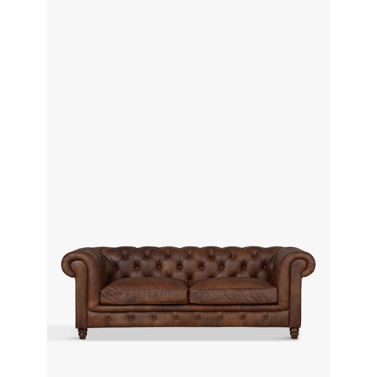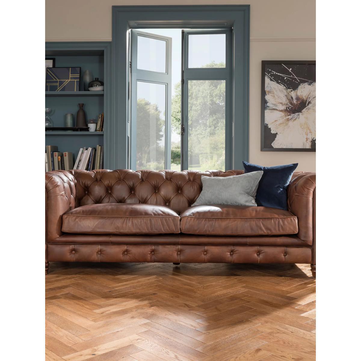 Product Information A beautiful take on the classic Chesterfield, Earle has gently scrolled, wide arms, a dramatic rolled back with button detailing and an extremely comfortable, deep sit. Aniline leather has been dyed to colour and sometimes features a thin, clear protective coating or no coating at all. It has the advantage of showcasing the natural beauty and texture of the leather for a stylishly rustic finish. Please note: not all our ranges are on display in our shops. Dimensions & Specifications 87084802 Access Dimensions - 259cm Assembly Required - Partial assembly required (legs) Brand - Halo Country of Origin - China Cover Type - Fixed Dimensions - H78 x W220 x D97cm Filling Composition - Seat: foam and fibre. Back: fibre Frame Construction - Glued Frame Material - Beech Height of seat - 44cm Number of Legs - 4 Product Type - Sofas Reclines - NO Removable Cover - NO Removable legs - YES Suspension - Pocket sprung Weight - 76kg --- Delivery Information Delivery within 7 days This product is ready to be sent right away and is usually delivered within 7 days, depending on the postcode. Free UK mainland delivery Delivery to UK mainland locations is free. The evening before your chosen delivery day, we’ll let you know a 2-hour delivery window. Delivering your product Our delivery team will place the product in your chosen room, assemble it and take all packaging away. More about delivery & returns --- ---