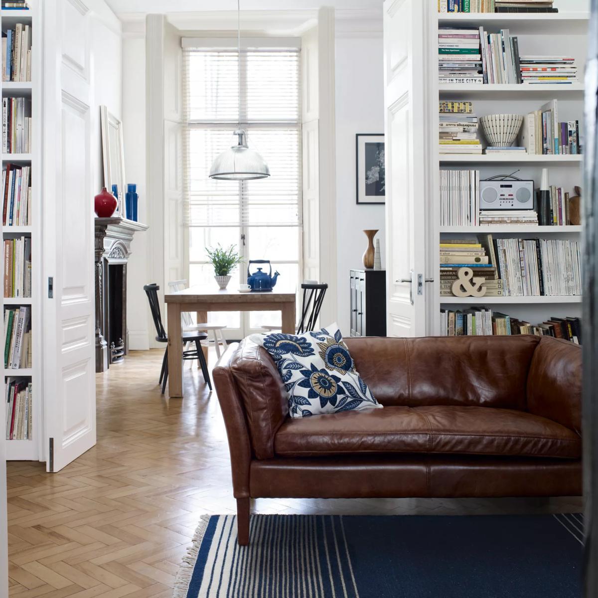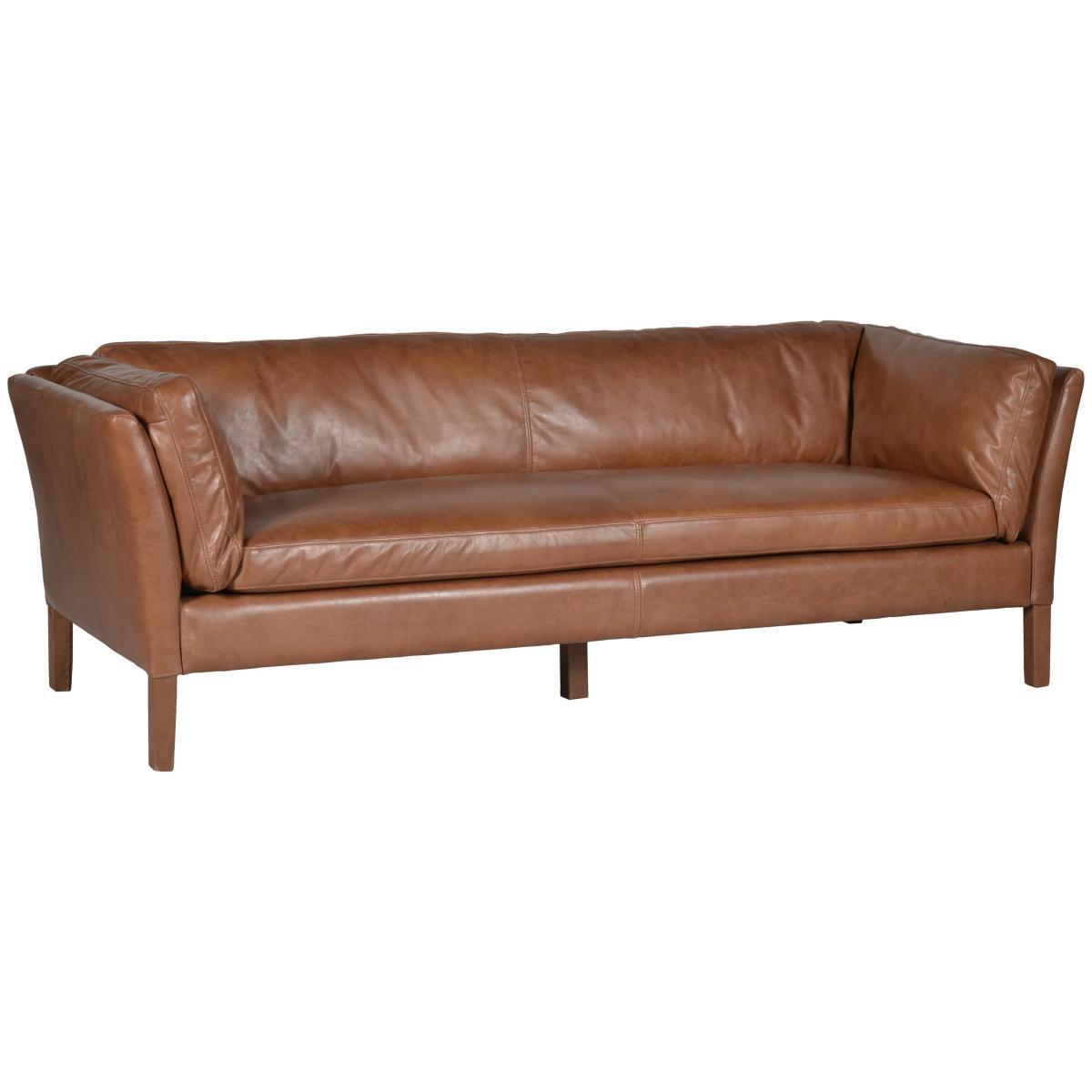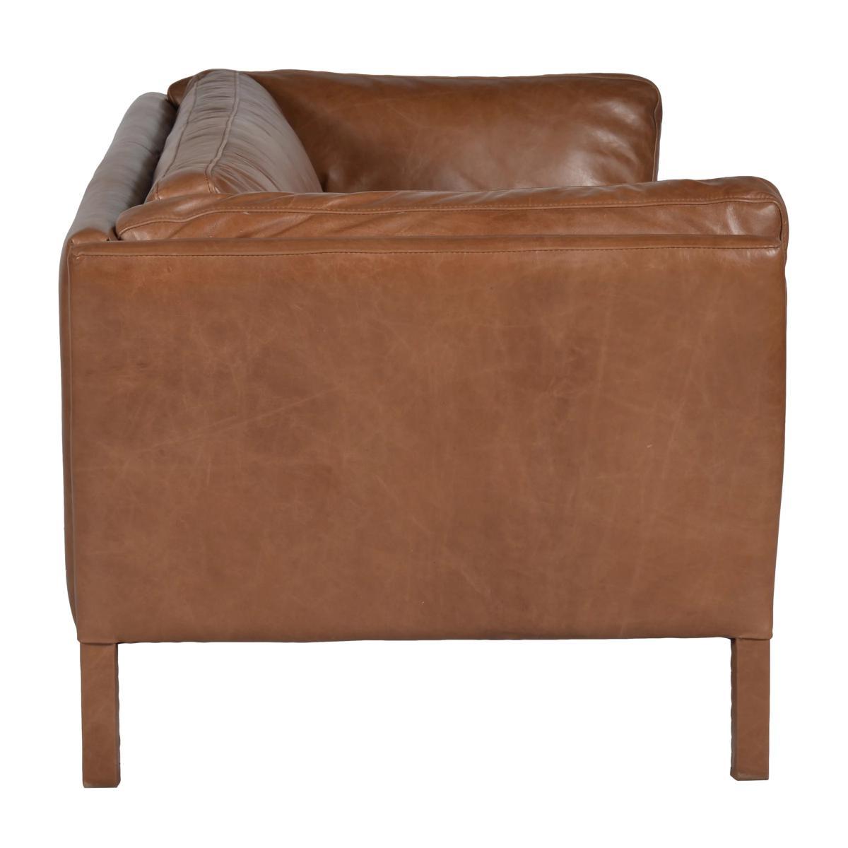 The Groucho is a stylish and refined low backed studio collection, perfect for hallways, landings and other small living spaces. Upholstered in beautiful Old Saddle leather, this piece has a beautifully plump back and arms, with leather clad legs finishing the look. Each leather hide is individually hand-dyed and varies in shade and grain. Original scars and natural markings attribute unique personality to each piece. Aniline leather has been dyed to colour and sometimes features a thin, clear protective coating or no coating at all. It has the advantage of showcasing the natural beauty and texture of the leather for a stylishly rustic finish.
