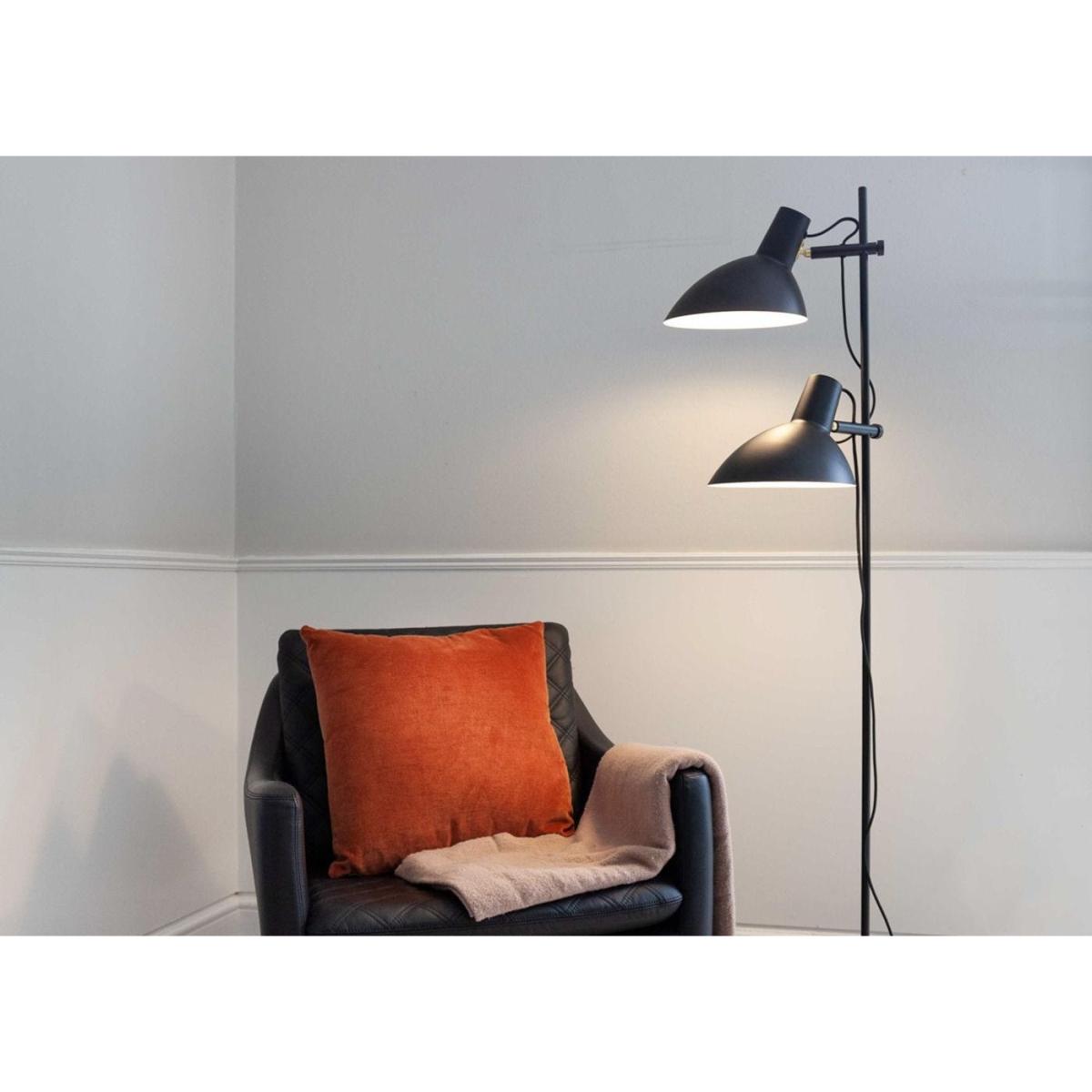 A refined take on industrial style, the Metropole 2-Arm Floor Light by Halo Design balances form and function. Featuring two adjustable laser-cut metal shades with integrated switches, it allows precise control of your lighting. Finished in matte black with subtle brass accents, it's the perfect companion for reading corners, lounges, or home offices.
