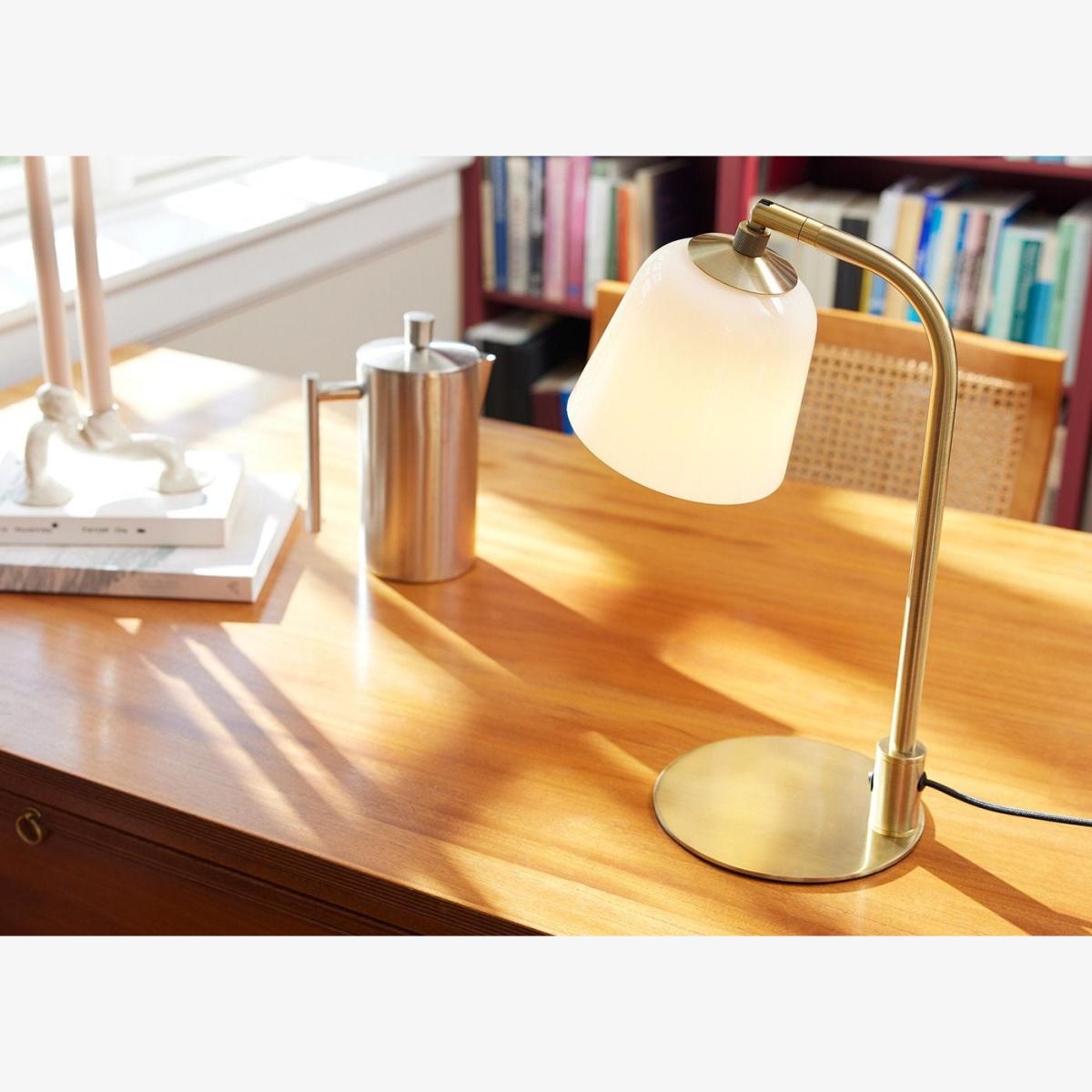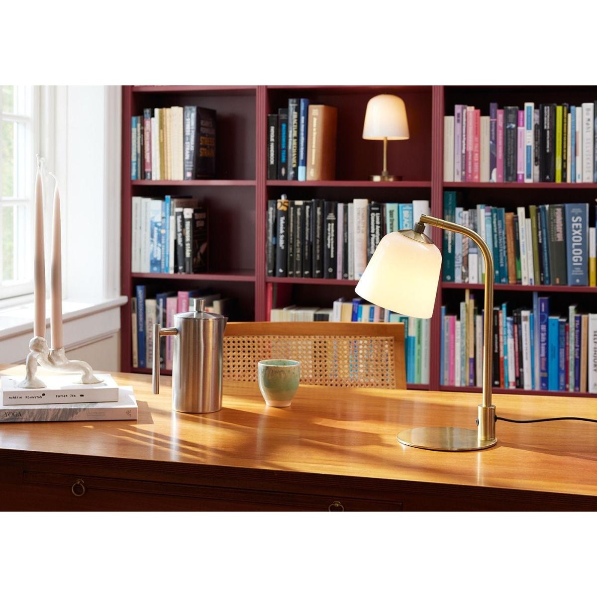 Crafted in collaboration with interior designer Christian Bondo Gravesen, the Room 49 Table Lamp by Halo Design pairs a curved opal glass shade with a warm, antique brass base to create a timeless silhouette. The mouth-blown, double-layered glass is highly polished, casting a beautifully diffused, ambient light ideal for desks, bedside tables, or reading corners.