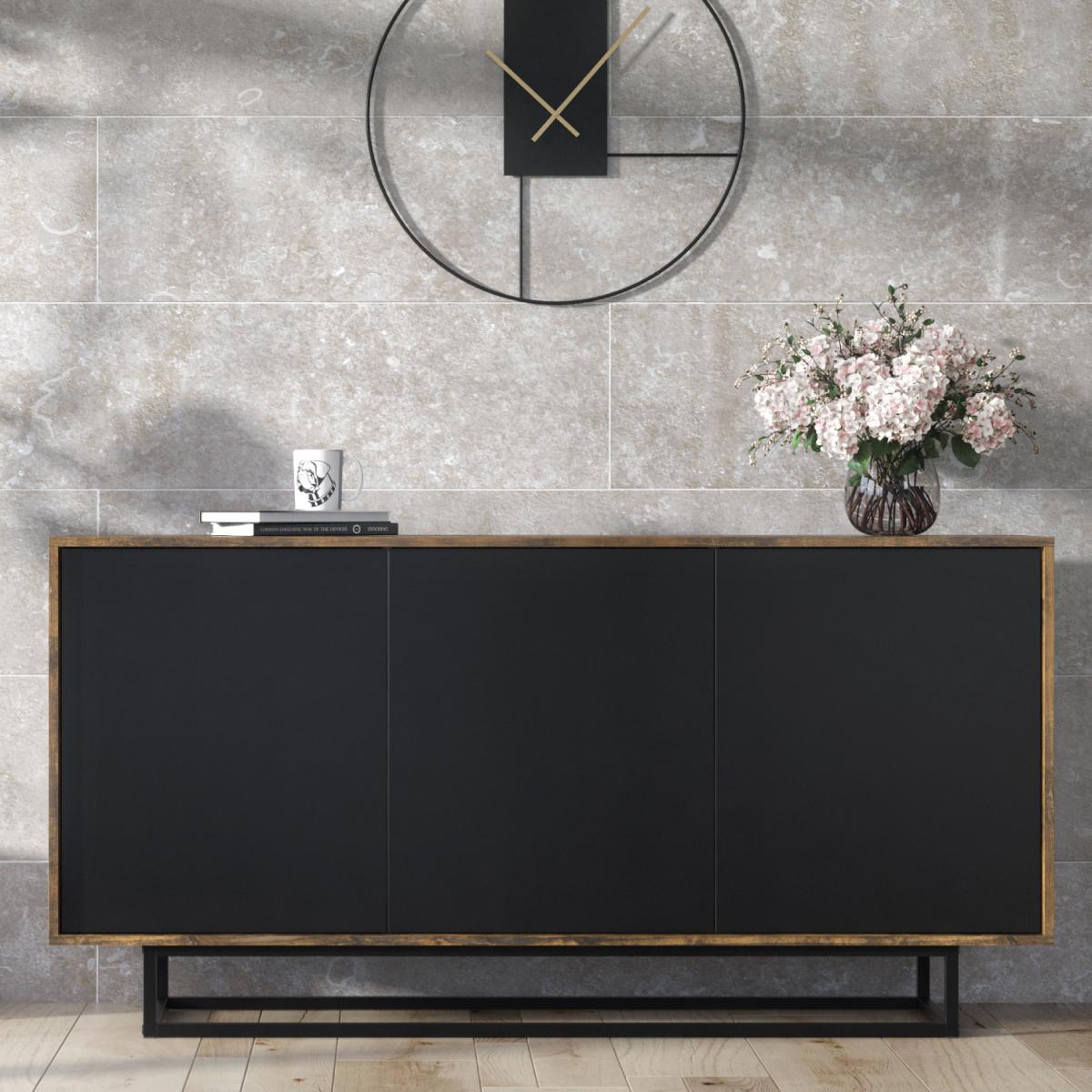 The Halo Loft Sideboard is a modern storage solution designed for those who value both style and practicality, offering generous storage space while maintaining a sleek and streamlined design. Measuring 160cm (W) x 80cm (H) x 35cm (D), this sideboard is perfect for contemporary interiors. It features three push-to-open doors that reveal spacious hidden compartments, ideal for storing everyday essentials, tableware, or decorative items, with thoughtfully divided interiors to help keep your belongings neatly organized. Crafted from high-quality 16mm MDF and chipboard, the Halo Loft Sideboard ensures durability and long-lasting performance, while its bold black metal legs add an industrial touch, enhancing its clean lines and minimalist aesthetic. Perfect for modern, loft-inspired, or minimalist interiors, this versatile sideboard seamlessly complements a variety of decor styles. Whether placed in your living room, dining area, or hallway, it combines practical functionality with eye-catching design, making it a standout addition to your home. Available in Dark Oak, Dark Oak Black Matt Doors, and Rustic Black Matt Doors.