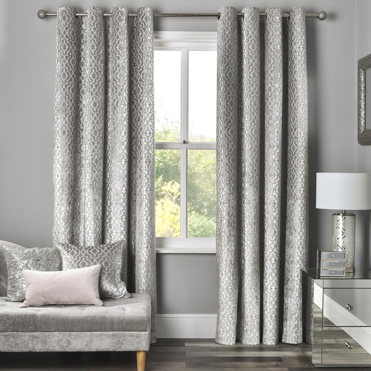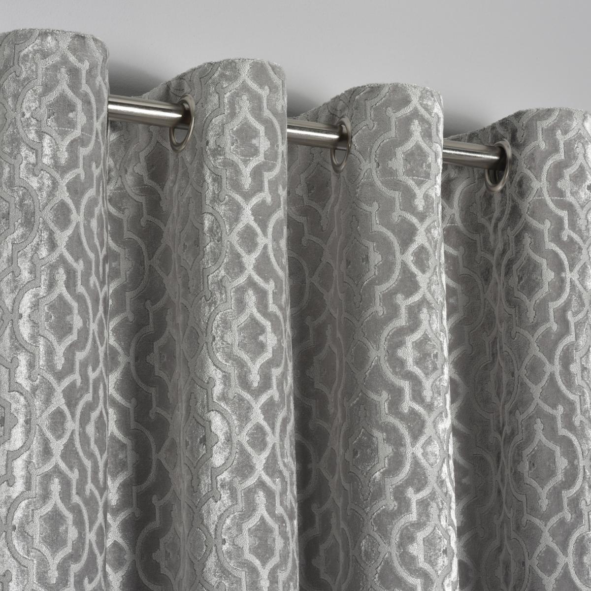 Our Halo Velvet Lined Curtains are embossed with a lavish quatrefoil pattern and produce a lustrous sheen as the light catches their luxury velve fabric. Cascading from modern eyelets, these deluxe curtains are fully lined to provide a flawless drop and effeciently block the light.