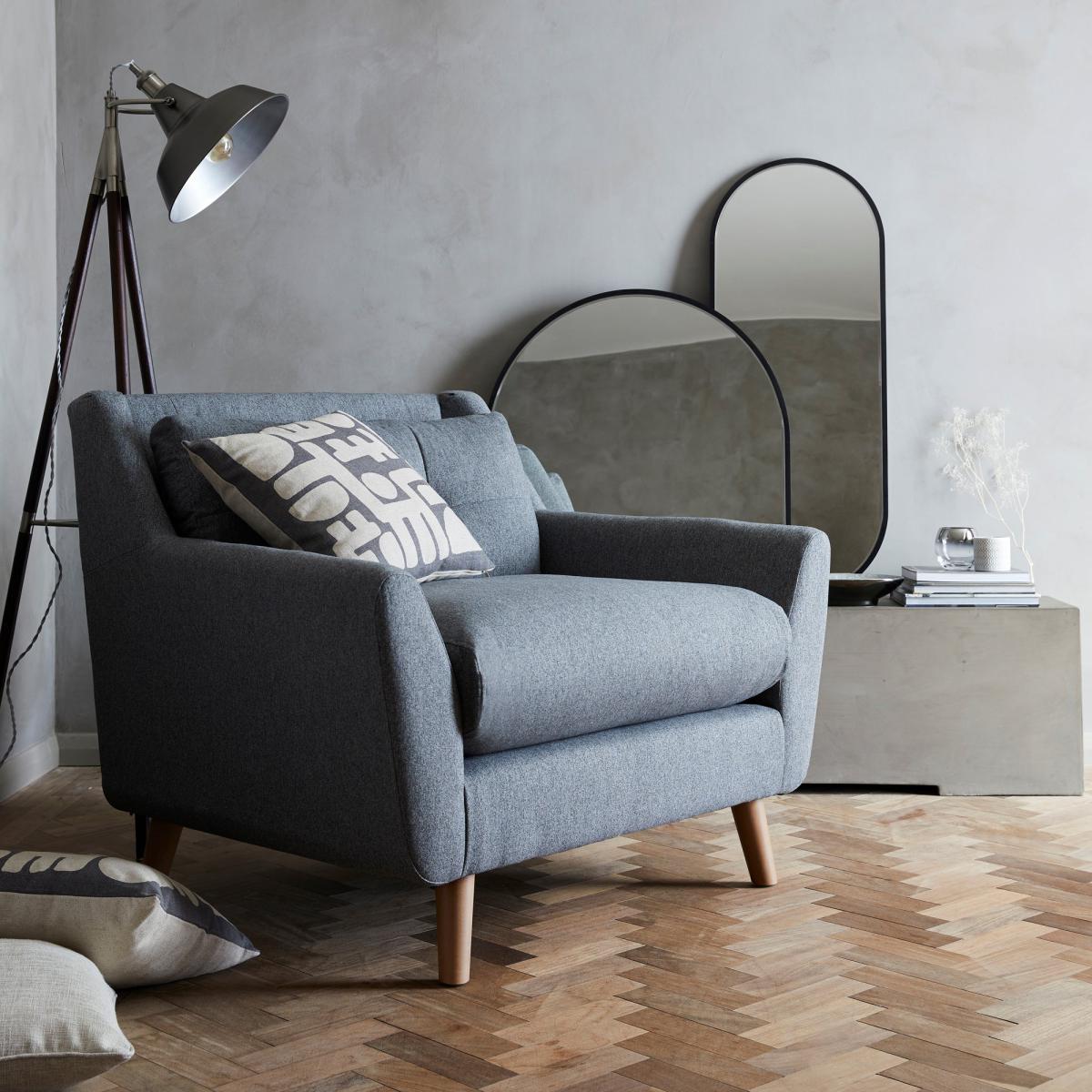 Beautifully crafted with winged arm, this blue Halston snuggle chair features a modern look, ideal for contemporary and transitional spaces. With its deep fibre filled seat cushions with spring suspension, this snuggle chair is upholstered in a comforting fabric to provide soft to touch feel. Designed with angled wooden legs and button back detailing, this snuggle chair is sure to add a touch of elegance to your room and provide comfort. Did you know, we now offer a 10 year frame guarantee on this sofa. To find out more, please. To check out our handy sizing guide to help you find out if you’ll be able to get your new furniture into your home.