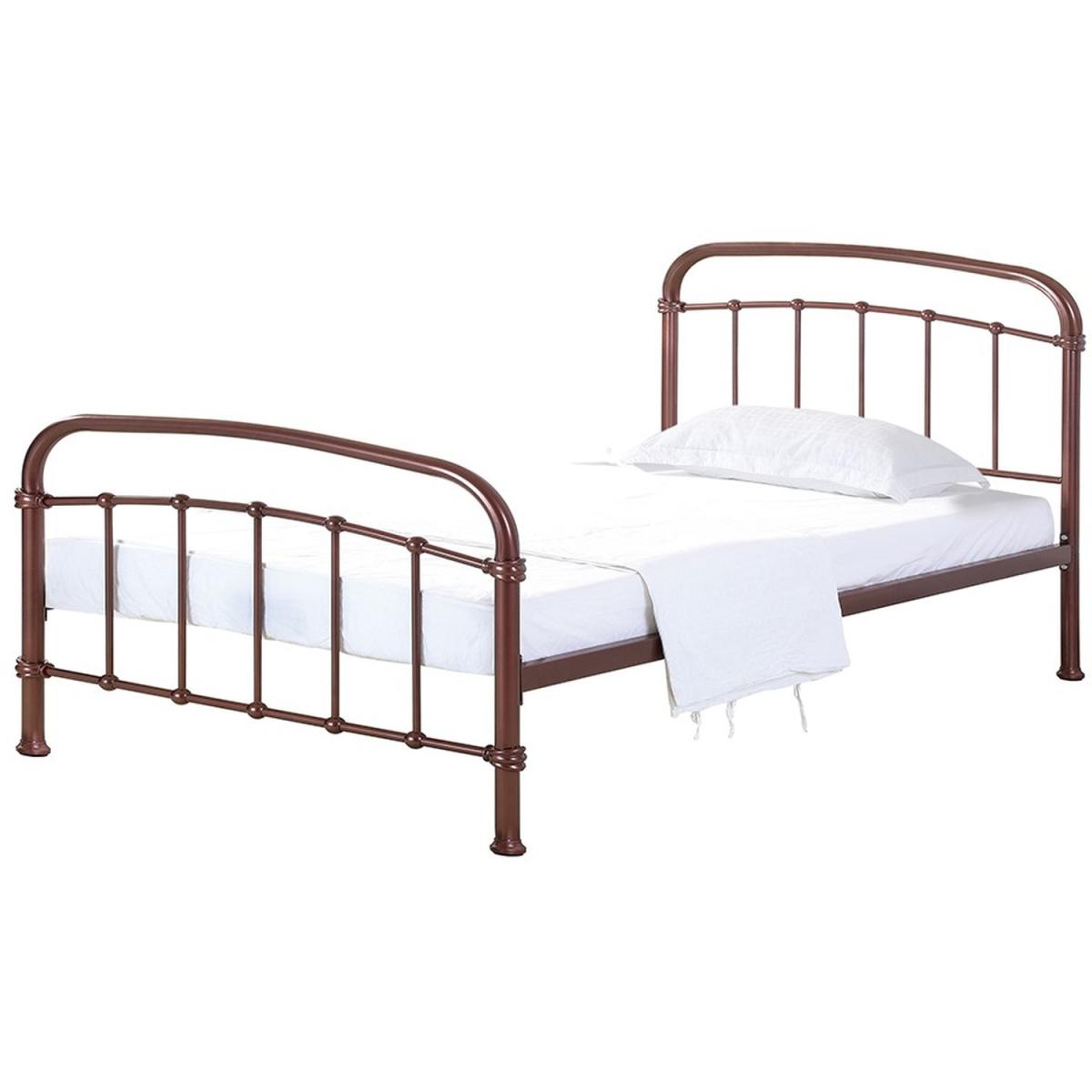I love this copper metal bed frame for its pared-back, industrial charm that works well in both contemporary and vintage-inspired interiors. Its slender, curved lines add a touch of softness, making it versatile across different colour schemes and styles. It's a great choice for smaller bedrooms or single beds, as it maintains an open feel. To style around it, consider layering with textured linens or soft throws to soften the metal's edge, or pair it with neutral or muted tones for a modern look. It also works well with brass or brass-toned accessories and bedding for a warm, cohesive aesthetic. Practical tip: position it against a plain wall for maximum impact and keep accessories minimal to let the frame be the star.