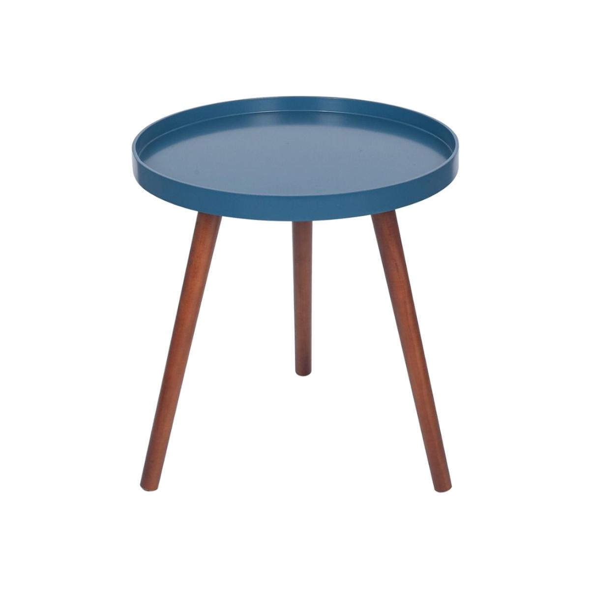 Halston Sapphire Blue & Brown Pine Wood Round Table