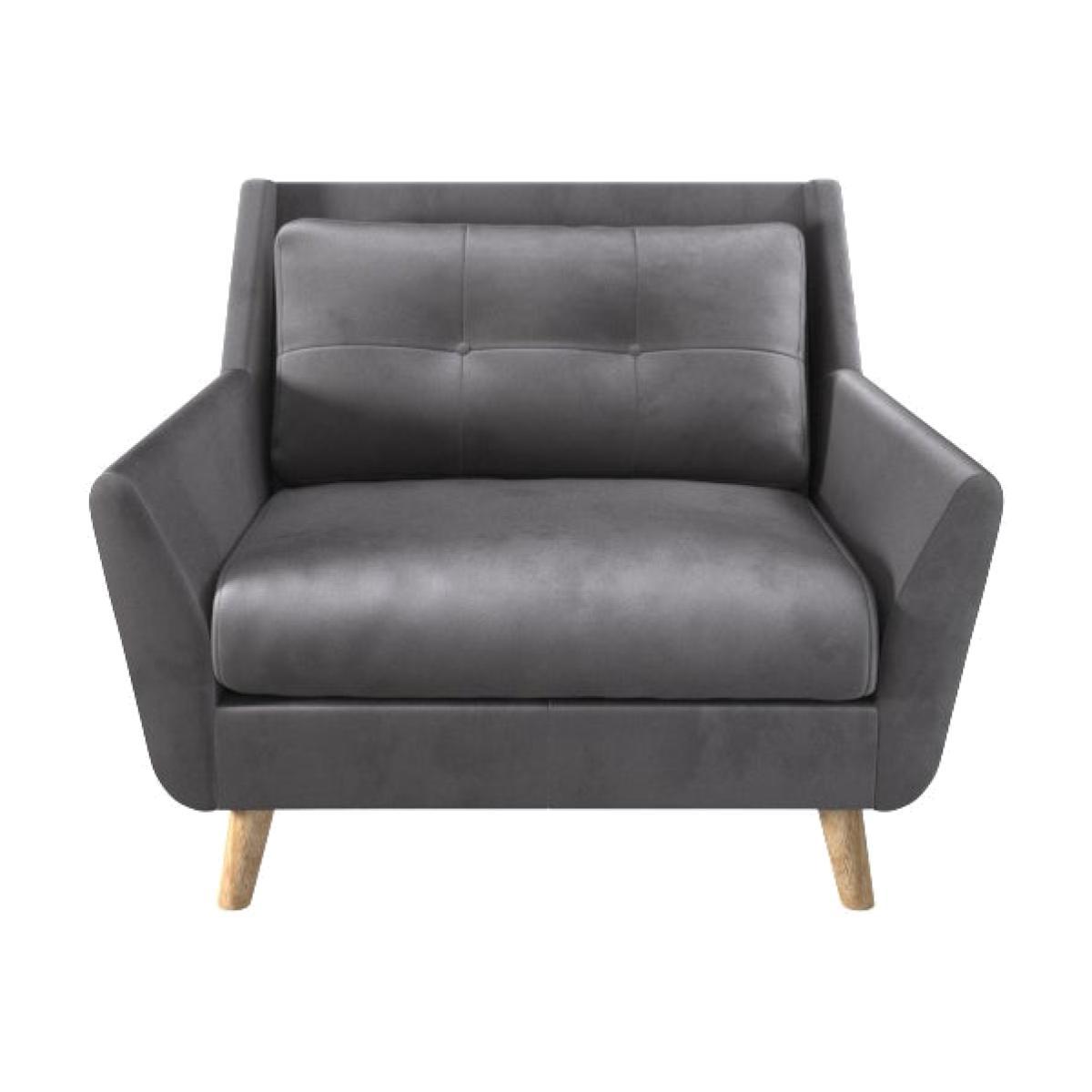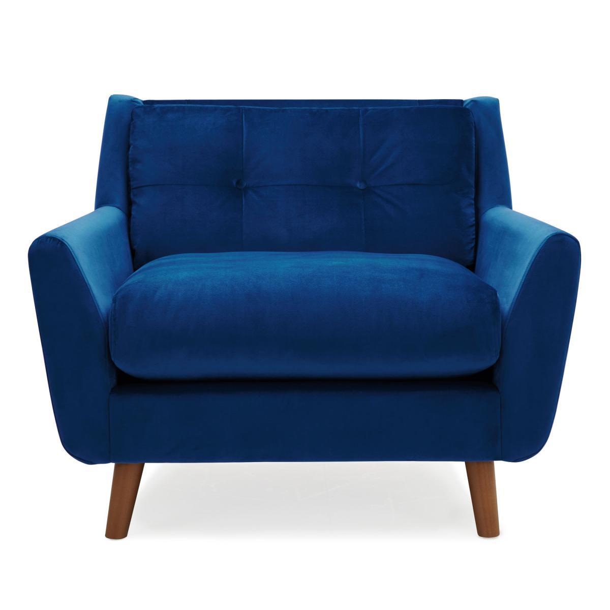 I love this snuggle chair for its versatile styling and cosy appeal. The grey velvet adds a touch of luxury without feeling overly formal, making it a great choice for both contemporary and mid-century inspired interiors. It works particularly well in lounge areas, home offices, or cosy corners where you want an inviting and comfortable spot to relax. To style it effectively, consider pairing it with textured cushions or throws in contrasting fabrics and colours for a layered look. Its compact size makes it suitable for smaller spaces or as an accent seat alongside a larger sofa, while the angled wooden legs add a subtle natural element that helps it blend seamlessly into a variety of décor schemes.