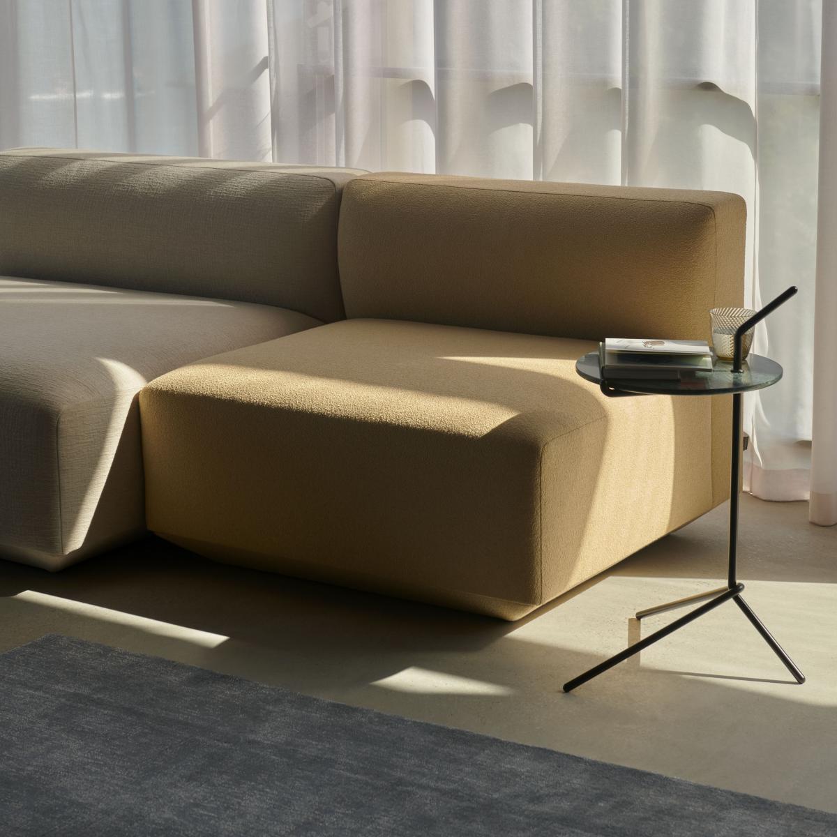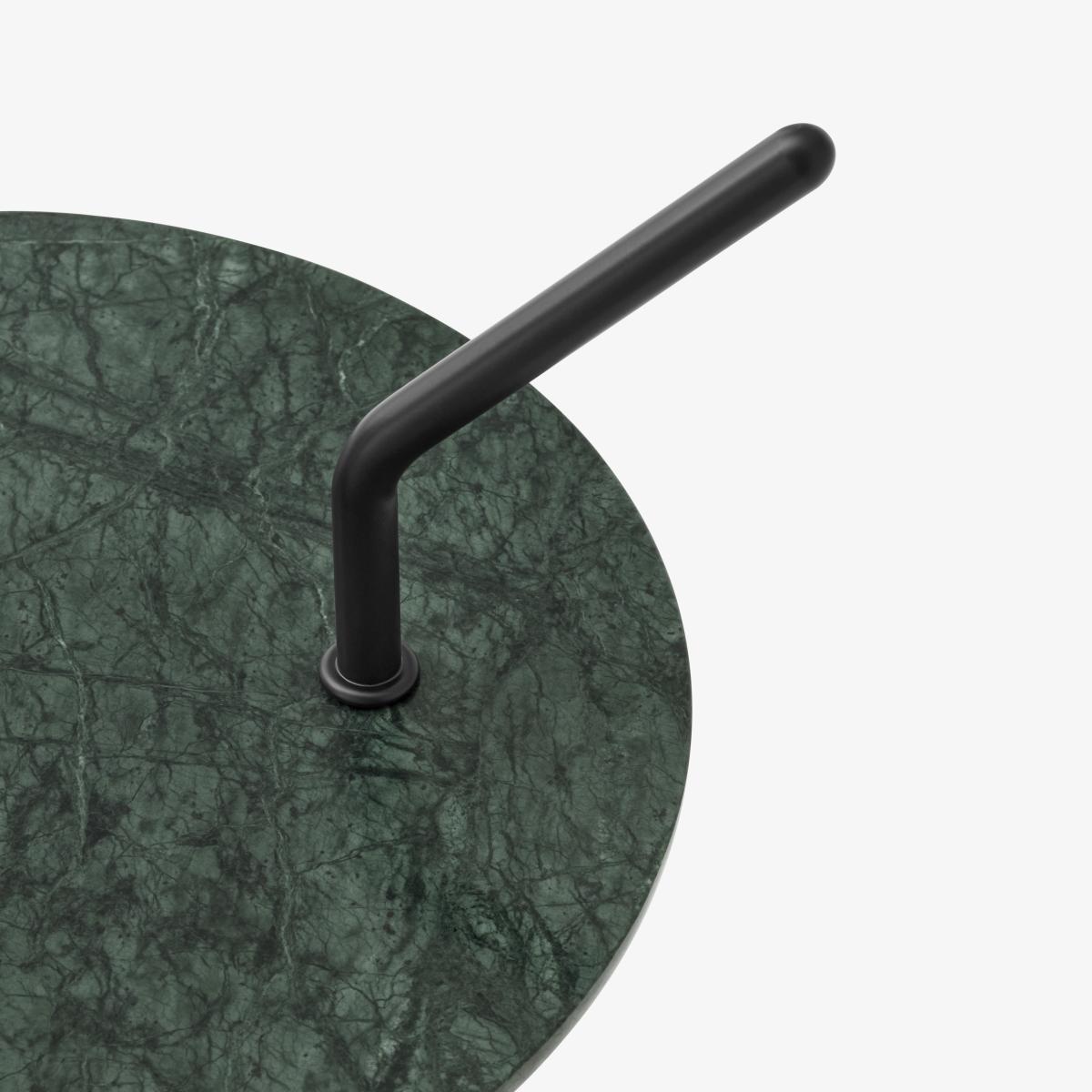 The Halten side table reflects German designer Sebastian Herkner's impeccable eye for detail and proportion, his affinity for form and appreciation of precious materials. Halten stands out with its tripod base and tubular steel structure, which extends to form a handle. This small go-anywhere table can easily be moved from the kitchen to the living room as you wish! The steel structure supports a top in green Guatemala marble or smoked cast glass. Halten means “to hold, stay and last” in German: this side table is always there for you in your everyday life. Wherever you go in a residential or hotel setting, you can easily take it with you to pair with an armchair, sofa or ottoman.