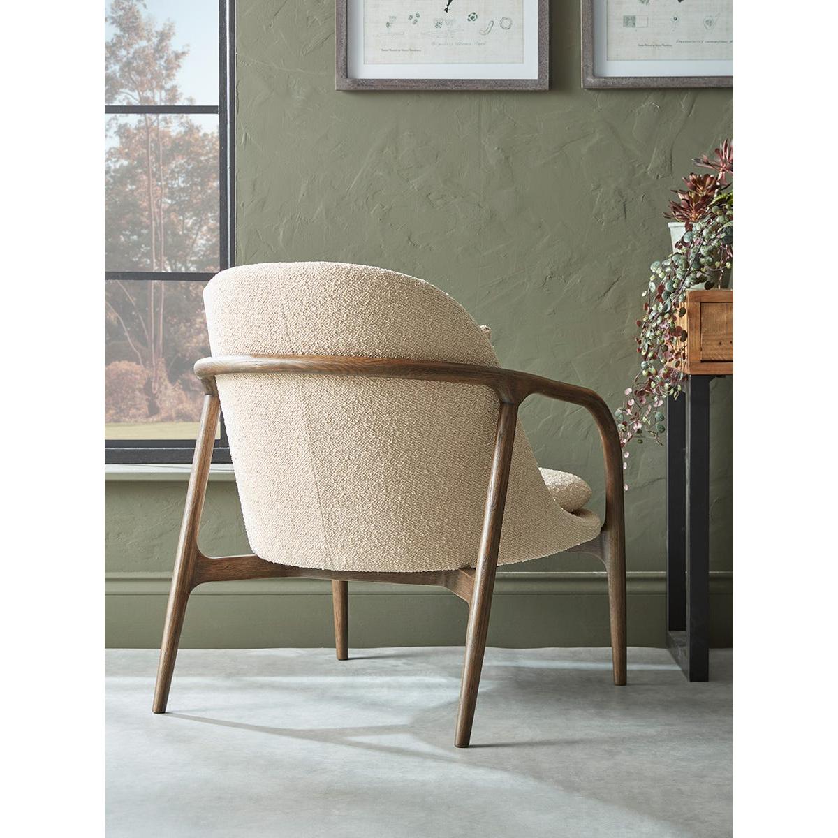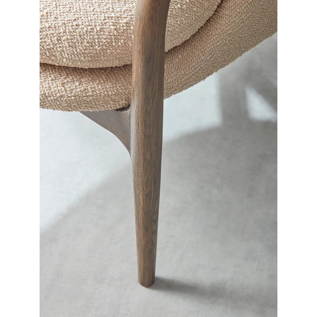 The expansive curves of our Hamar Armchair create a sense of movement while retaining a warm and inviting appeal making it ideal for both modern and traditional interiors. The ebony dark frame still allows the beautiful grain of the oak to be appreciated. The soft boucle fabric is in a neutral shade that contrasts strikingly with the frame. Luxuriously padded seat and back cushions ensure the cosiness is physical as well as visual.