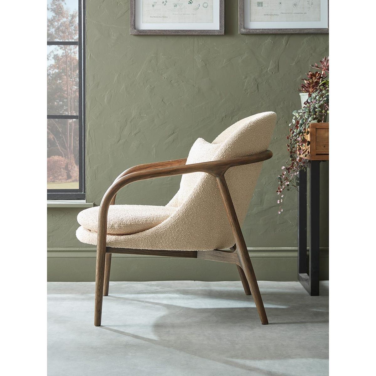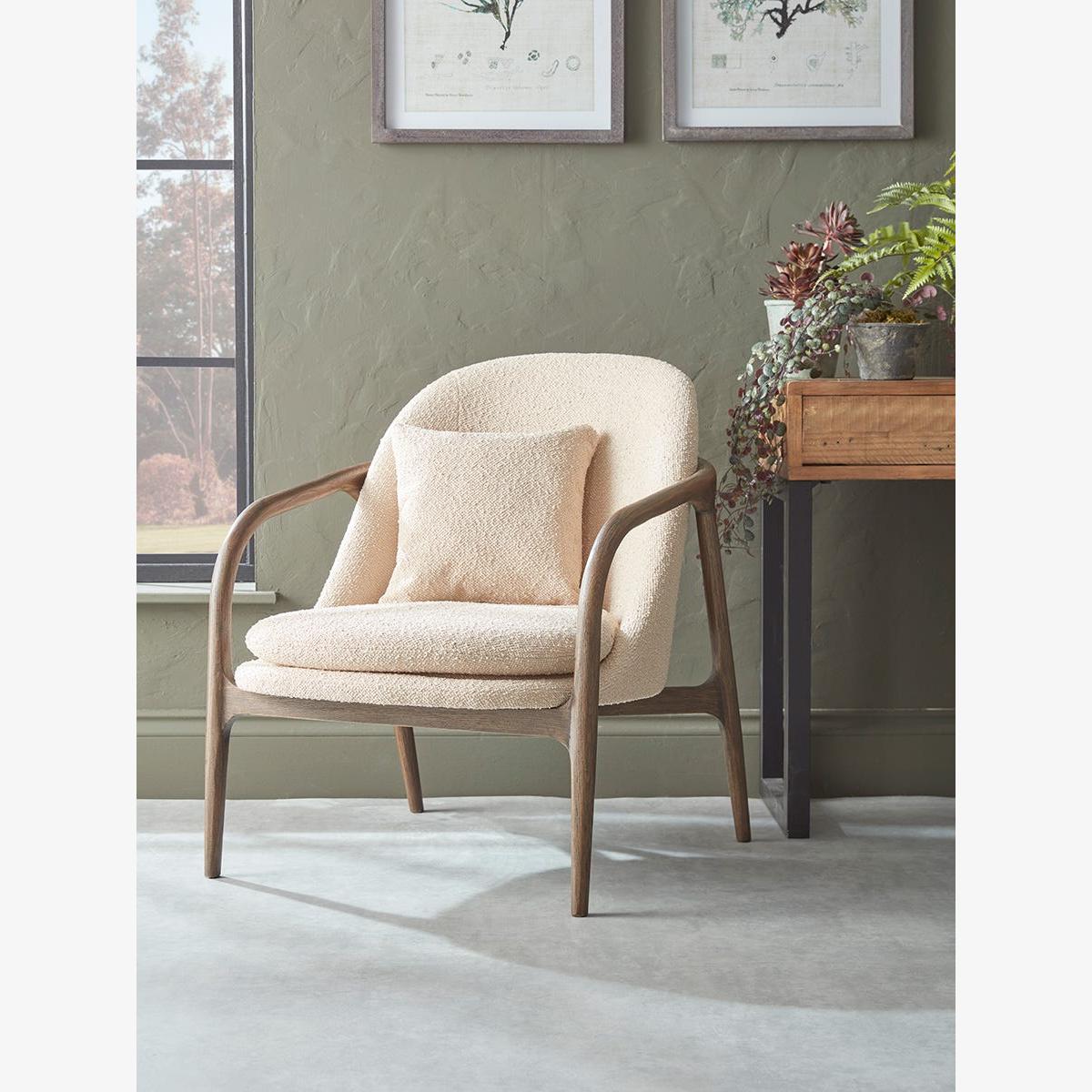 I’m a fan of the Hamar chair for its crisp, mid-century lines and bouclé-style upholstery - it adds instant texture without overpowering a scheme. Its light oak frame and neutral tone slot straight into Scandi, contemporary or minimalist interiors. For styling, drop in a contrast-trim cushion or a fine-knit throw to soften the look, then position it next to a slimline side table and a sculptural lamp for a cosy reading corner. It also works well in a hallway or bedroom nook in place of a traditional accent chair.