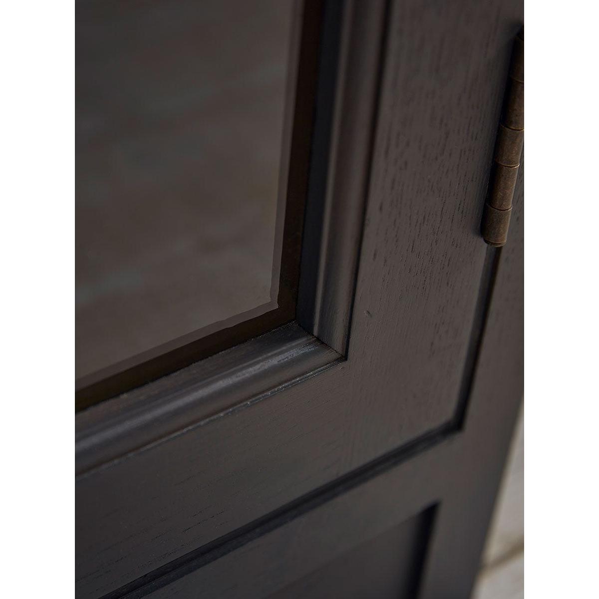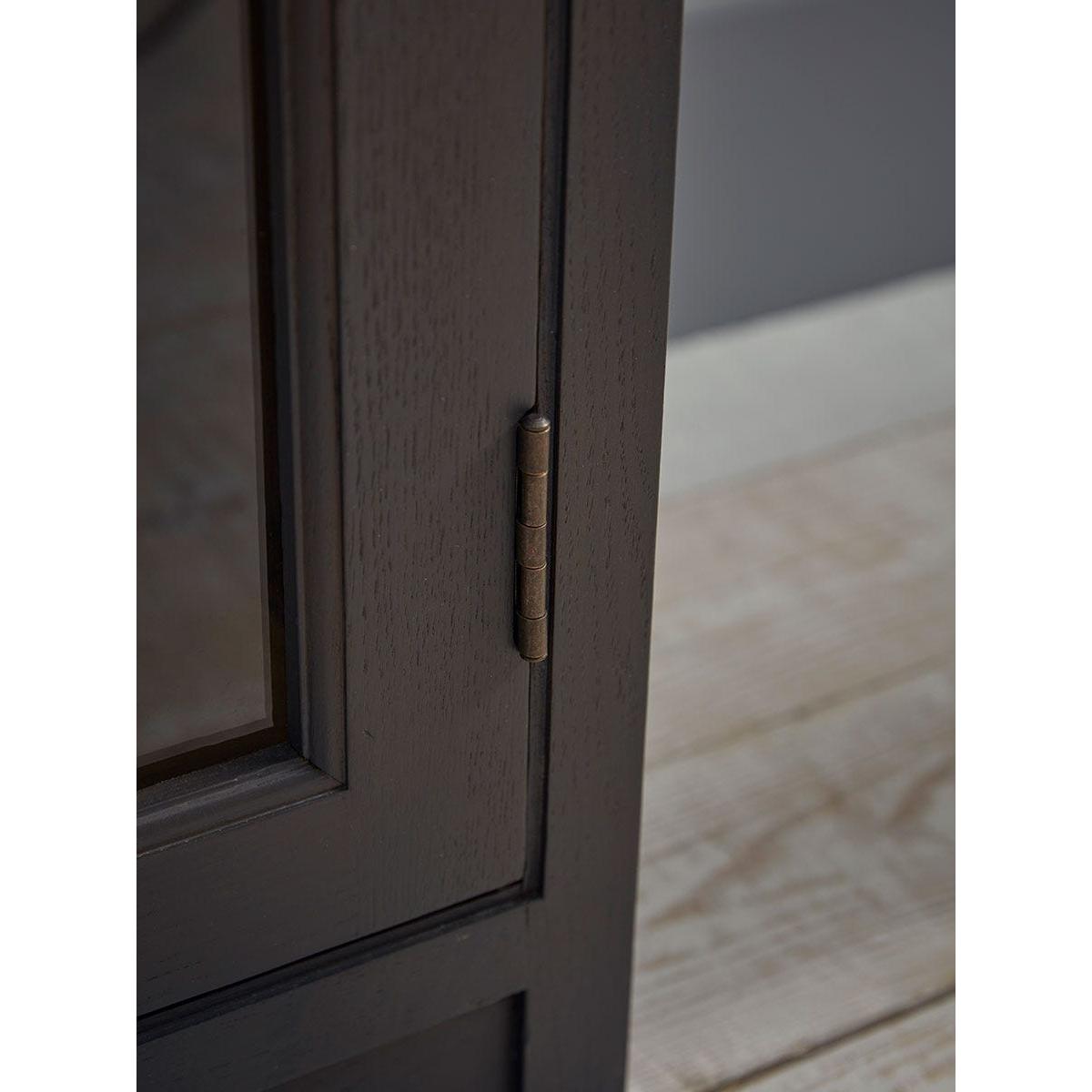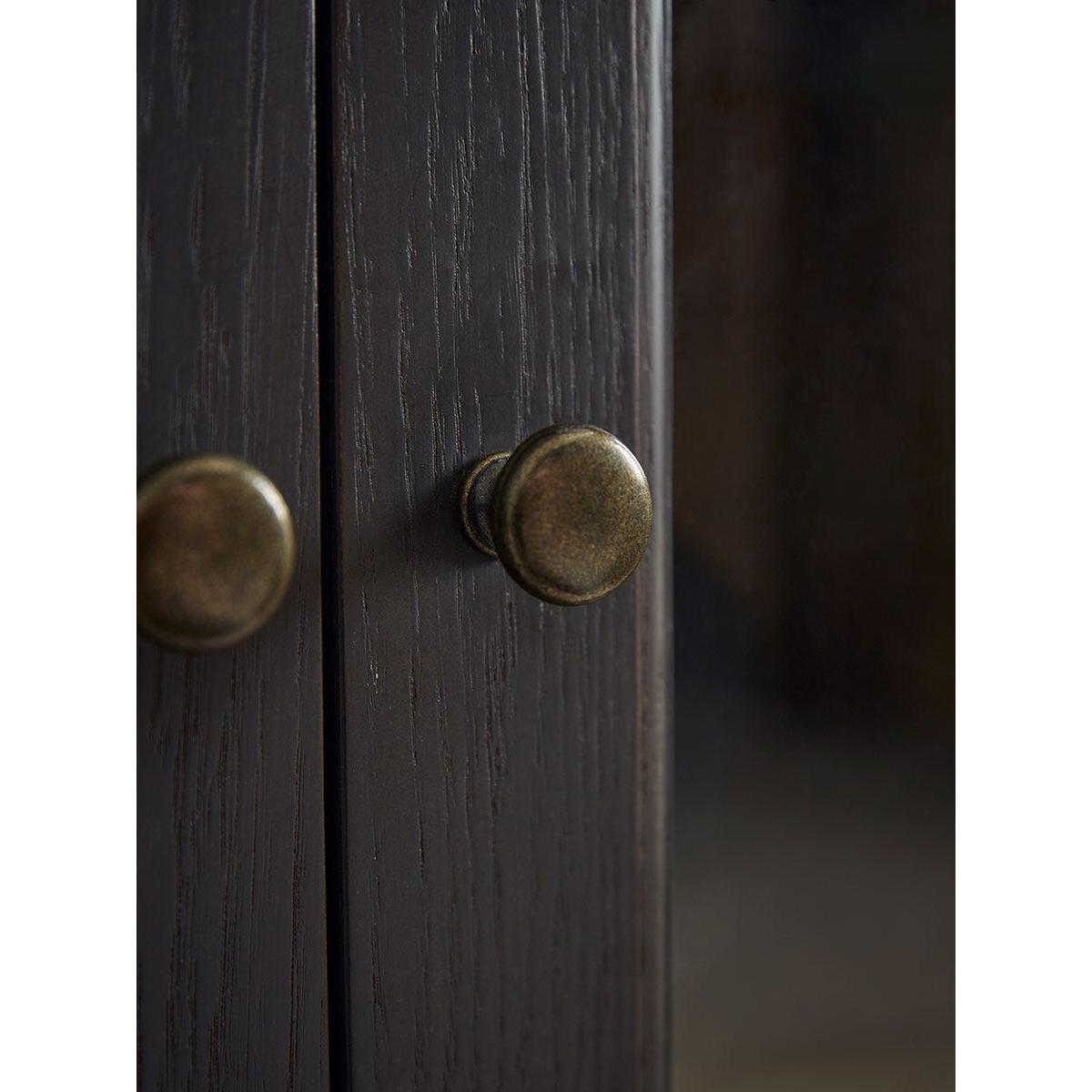 Made from oak, this cabinet has a dark painted exterior which creates a striking appearance, perfect for more modern interiors. Brass hardware matches the moodier tone of the exterior for a cabinet that sits perfectly in out Industrial trend. The natural oak shelves create beautiful contrast with the exterior which pairs wonderfully with the glass doors, working to add a lightness to the cabinet. Also available as a sideboard.
