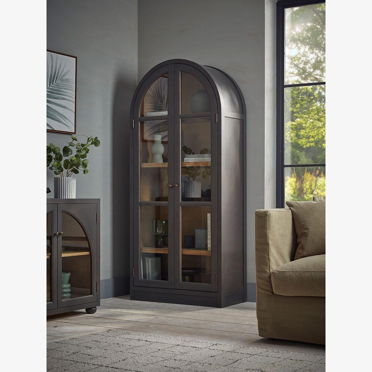 I’m particularly drawn to the arched Hamar cabinet for its blend of clean lines and subtle architectural detail - it feels equally at home in a modern industrial loft or a more traditional country home. The dark finish and glazing let you show off favourite pieces without overwhelming a space, and its slim profile works well in hallways or cosy corners. To style it, mix heights and textures: place a stack of books next to a small ceramic pot, then add a taller object like a vase or sculptural piece. Keep odd-numbered groupings and leave a little breathing room between items so each one stands out. A few sprigs of greenery or a strand of warm LED lights can soften the overall look and draw the eye.