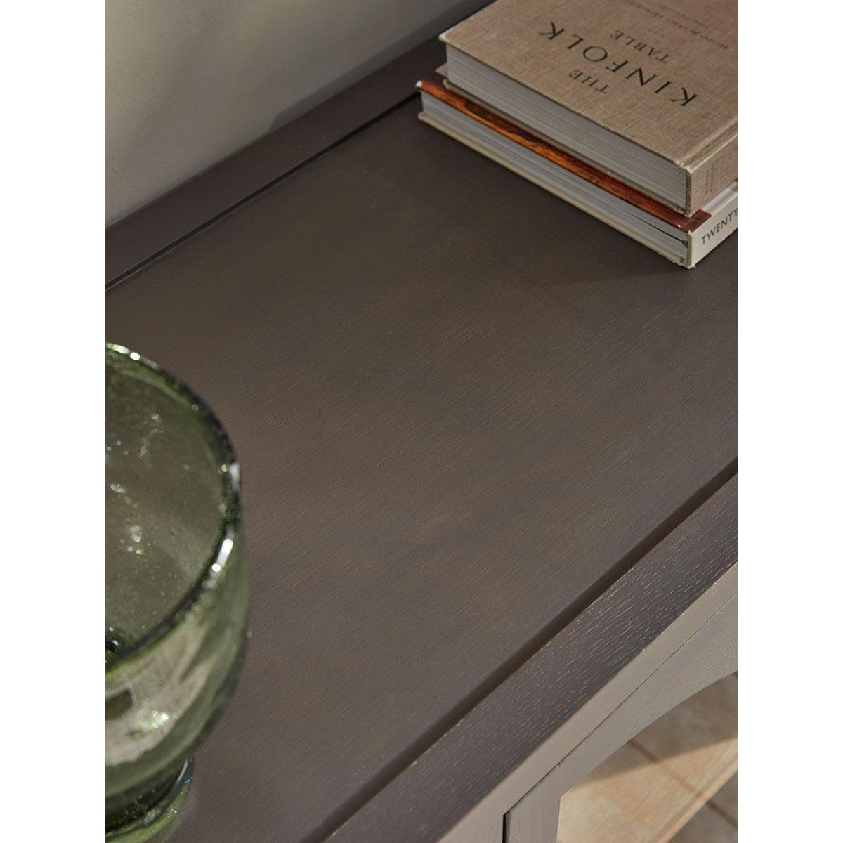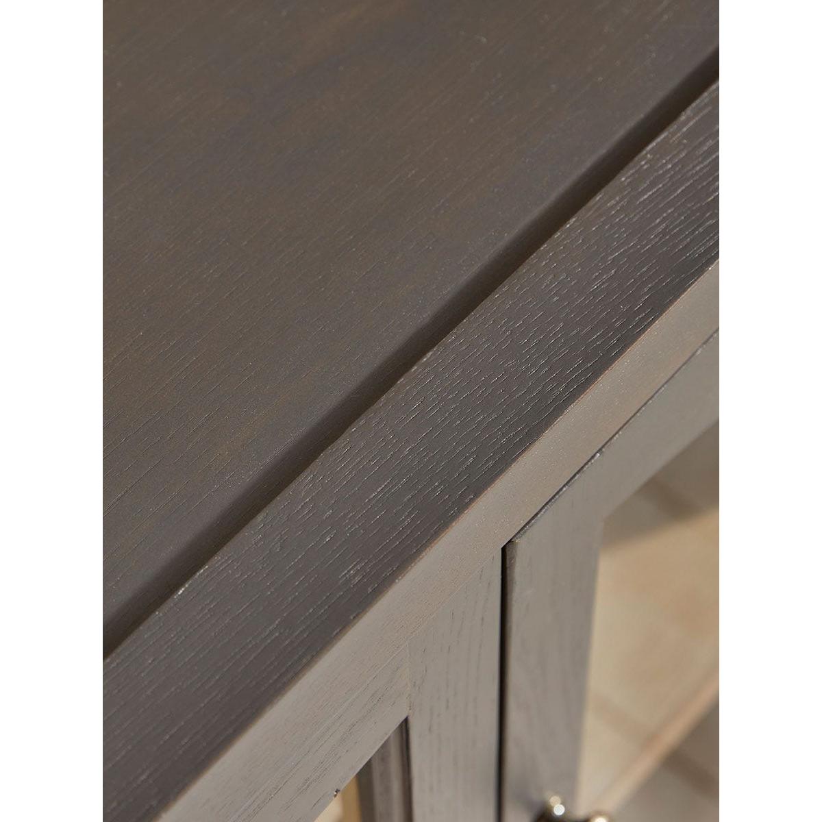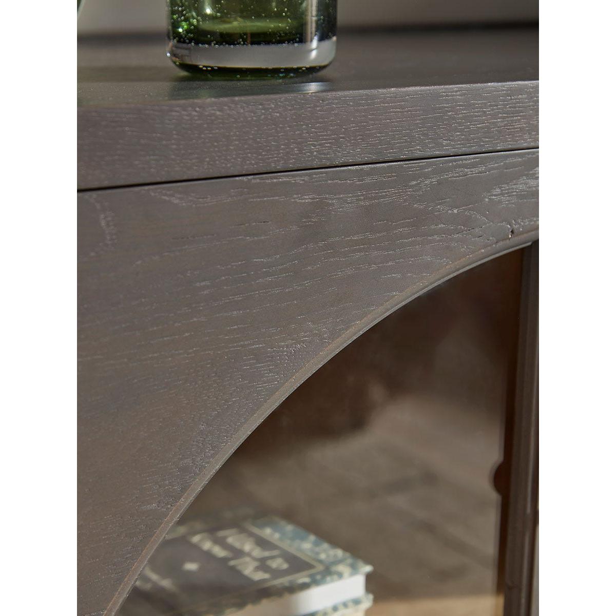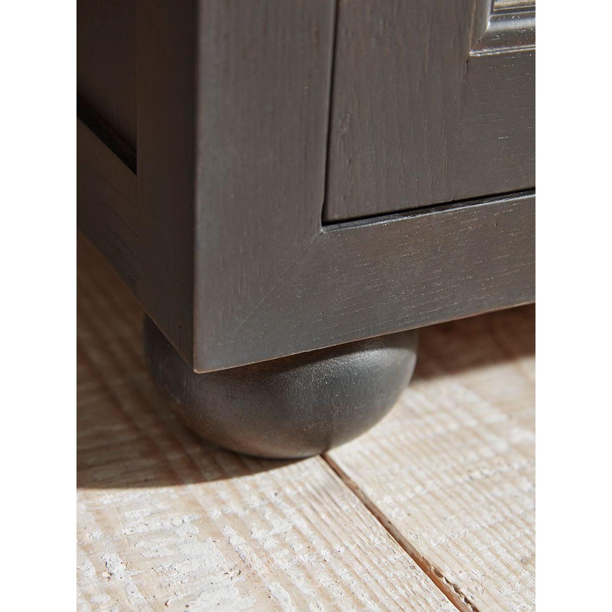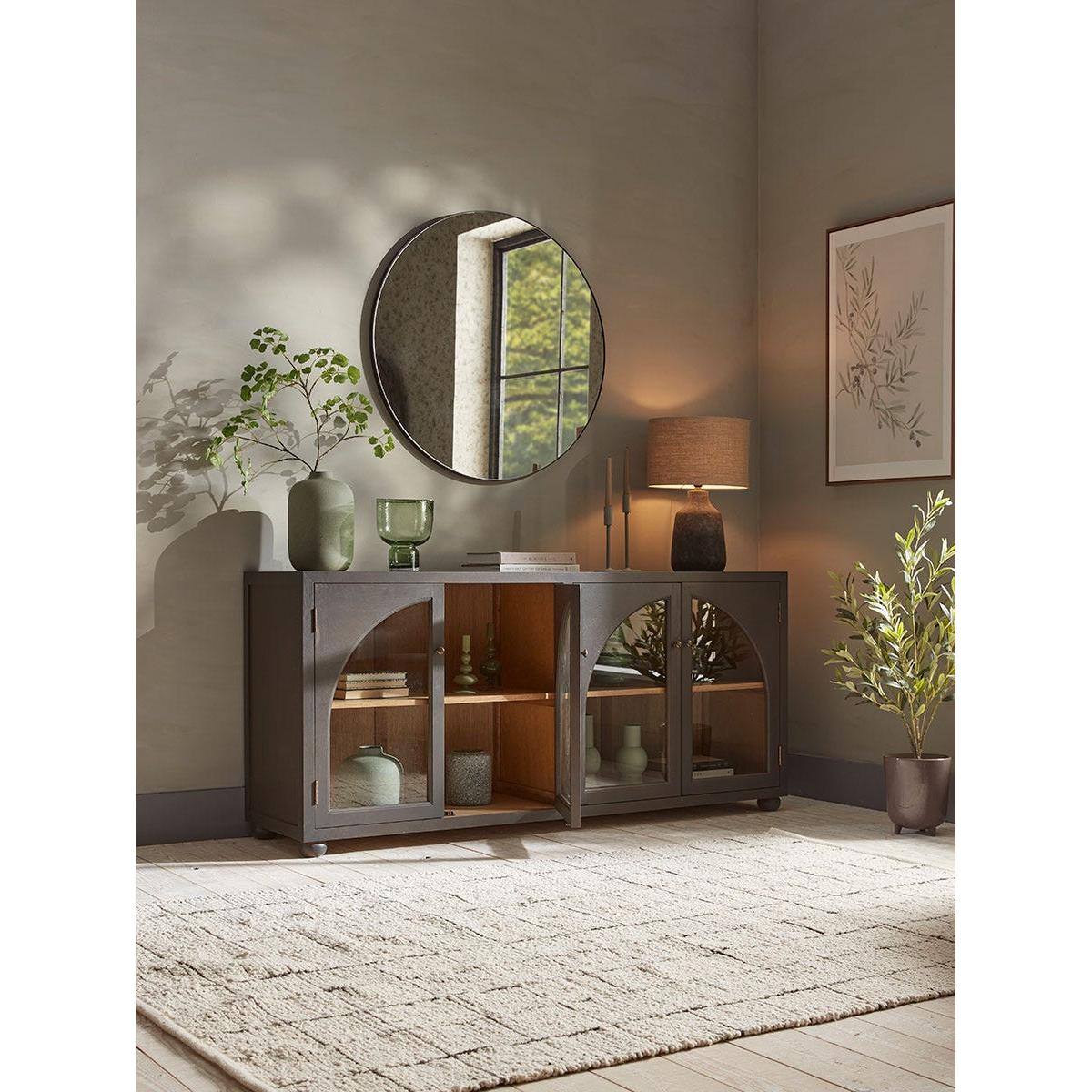 Beautifully curved glass arches feature on the doors of our Hamar Sideboard, allowing you to display your favourite accessories on the shelves inside. In a dark grey, the painted wood has a softness to it, which is enhanced by the rounded ball feet for a sideboard that sits wonderfully in a modern interior.