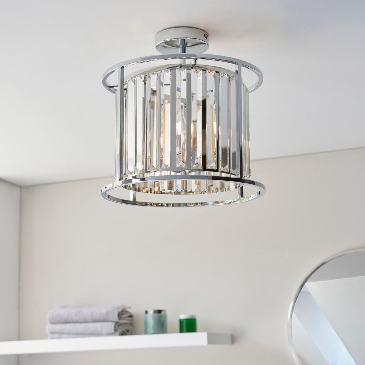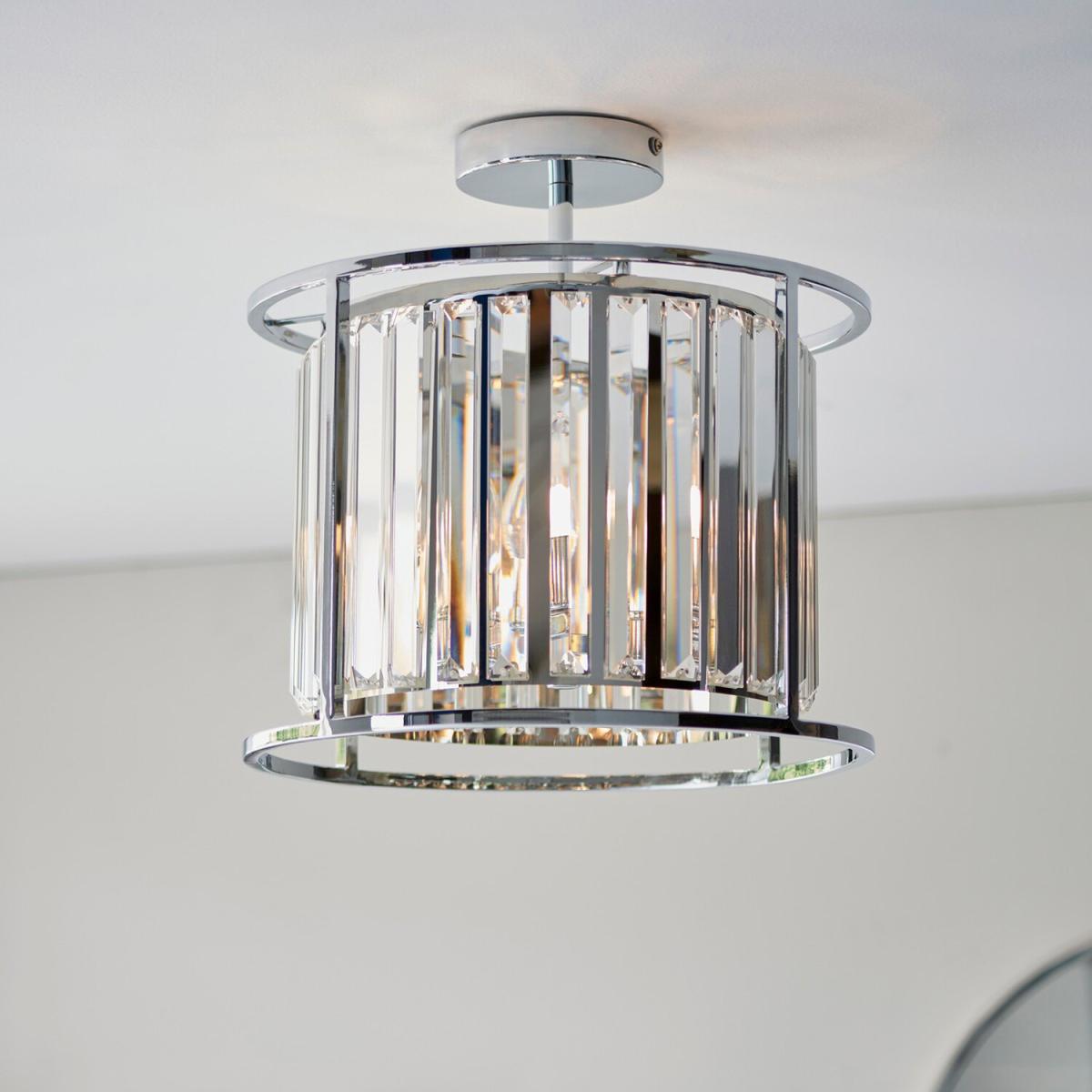 I love the Hamilton semi-flush for its sophisticated blend of chrome and clear crystal that adds a touch of glamour without overwhelming a space. It’s very versatile and works well in modern or contemporary interiors, especially in bedrooms, hallways, or small dining areas. Styling-wise, pair it with neutral tones for a sleek look, or incorporate metallic accents and textured fabrics for an opulent feel. Practical tip: this kind of light needs minimal maintenance but benefits from a regular dusting to keep its crystals sparkling. It’s a statement piece that elevates the overall aesthetic while providing good ambient light, making it a smart choice for interiors that aim to be both stylish and functional.