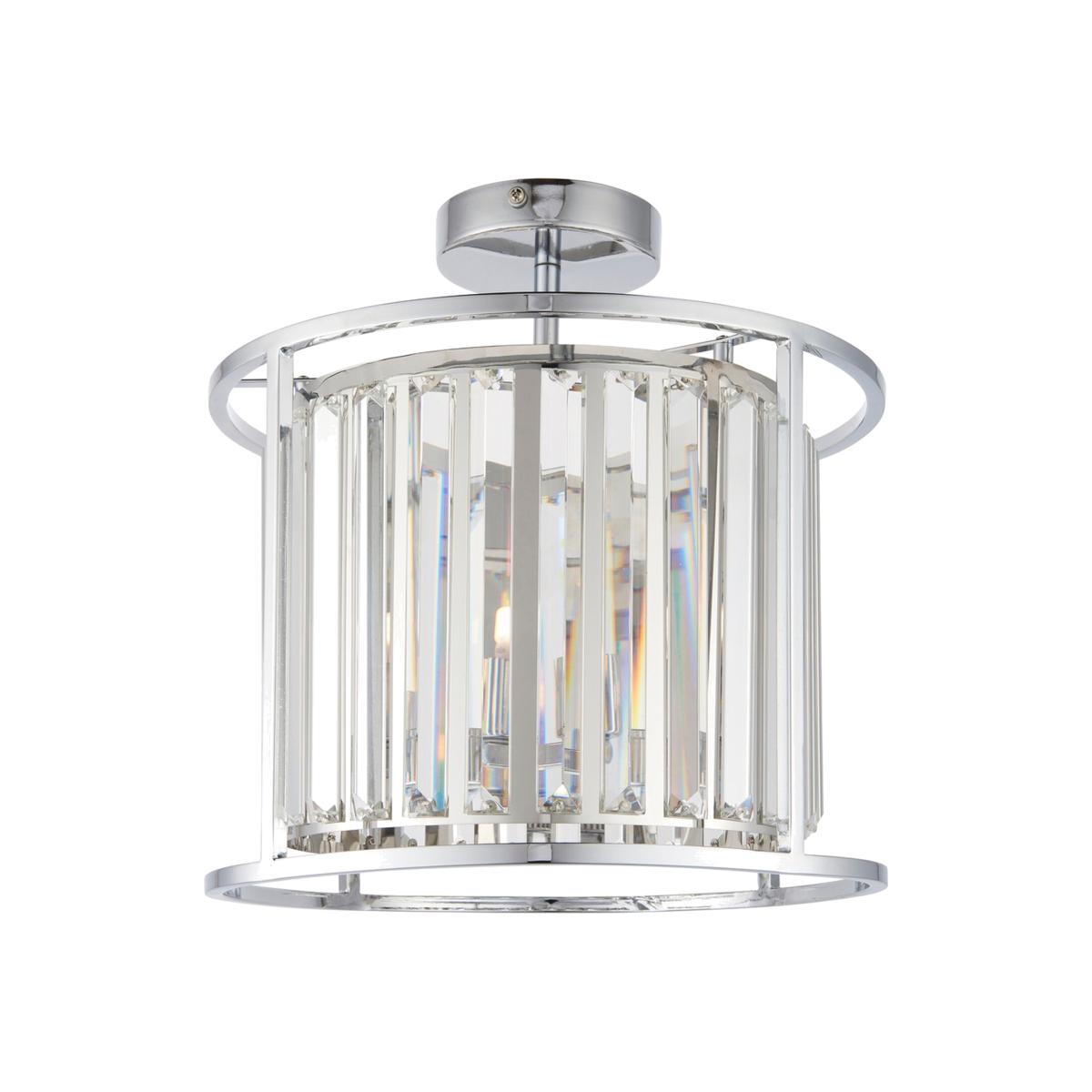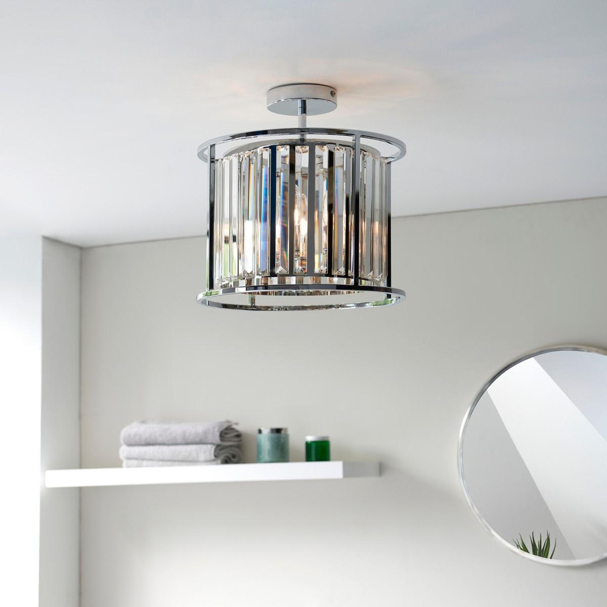 Hamilton Cylindrical Semi Flush Ceiling Light with Faceted Cut Crystals, IP44 - Chrome Plate & Clear Crystal Glass