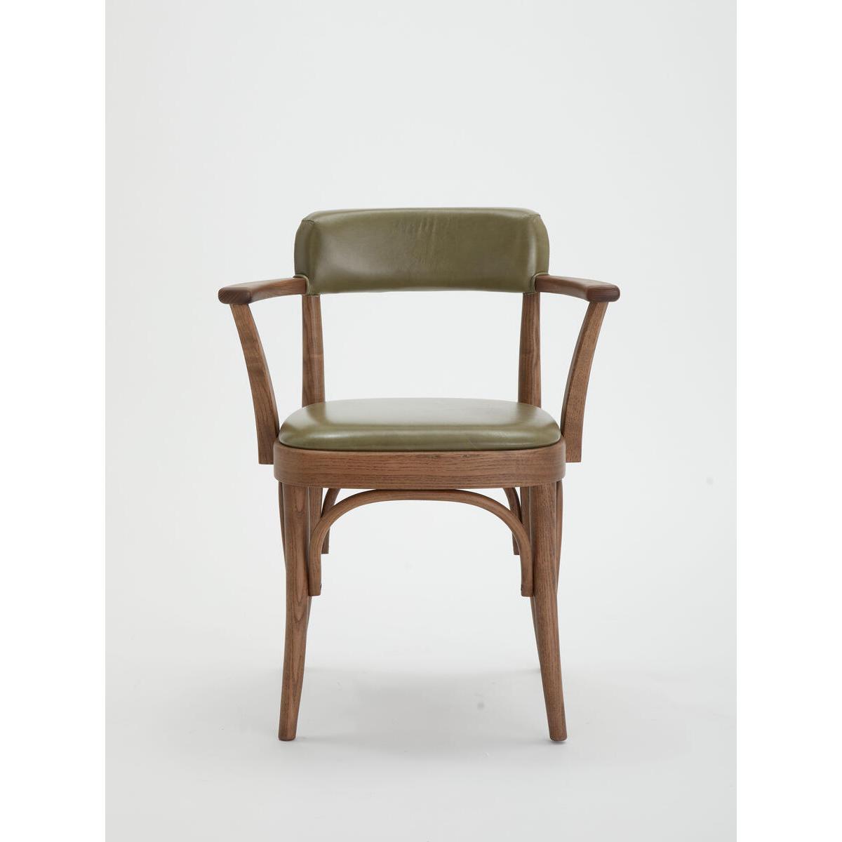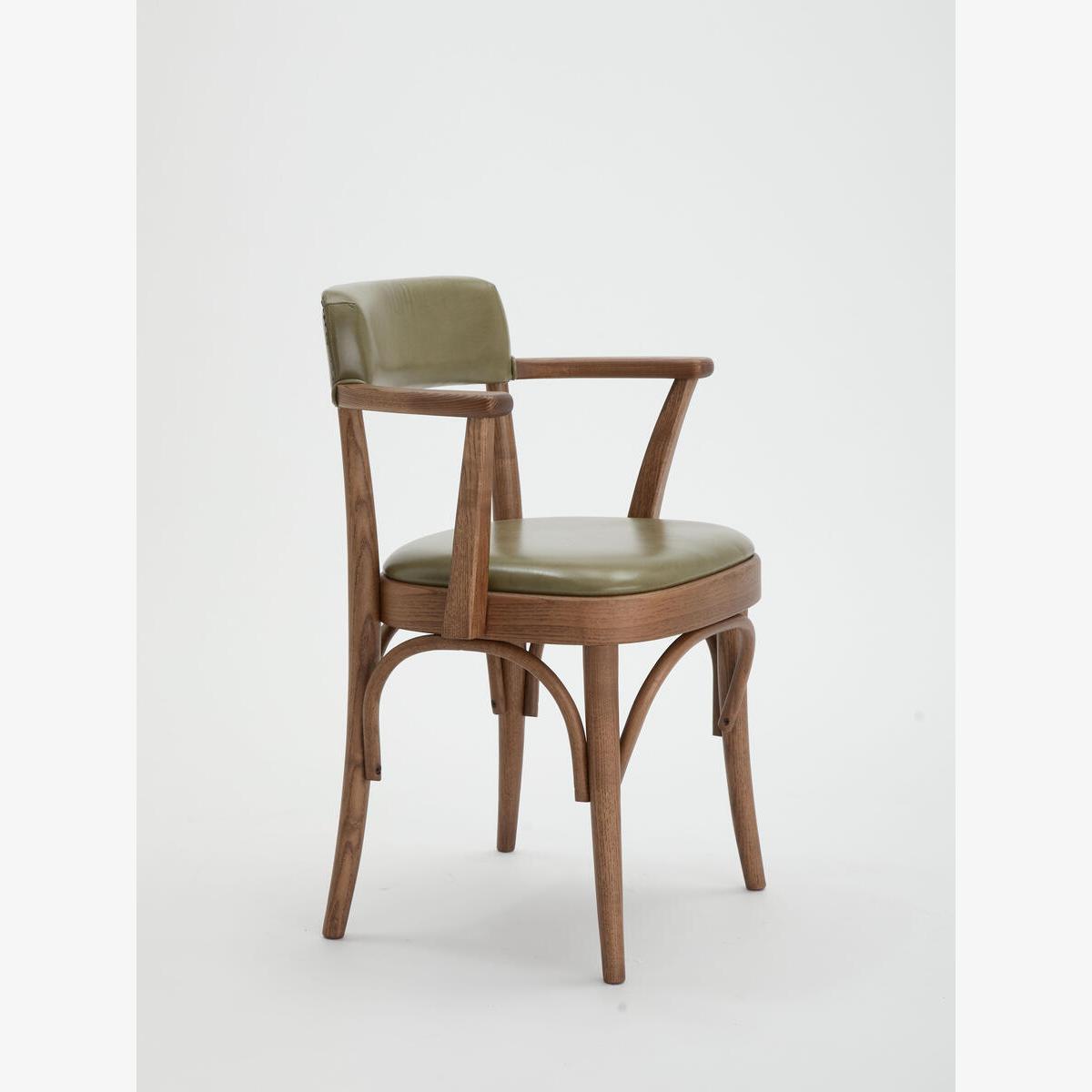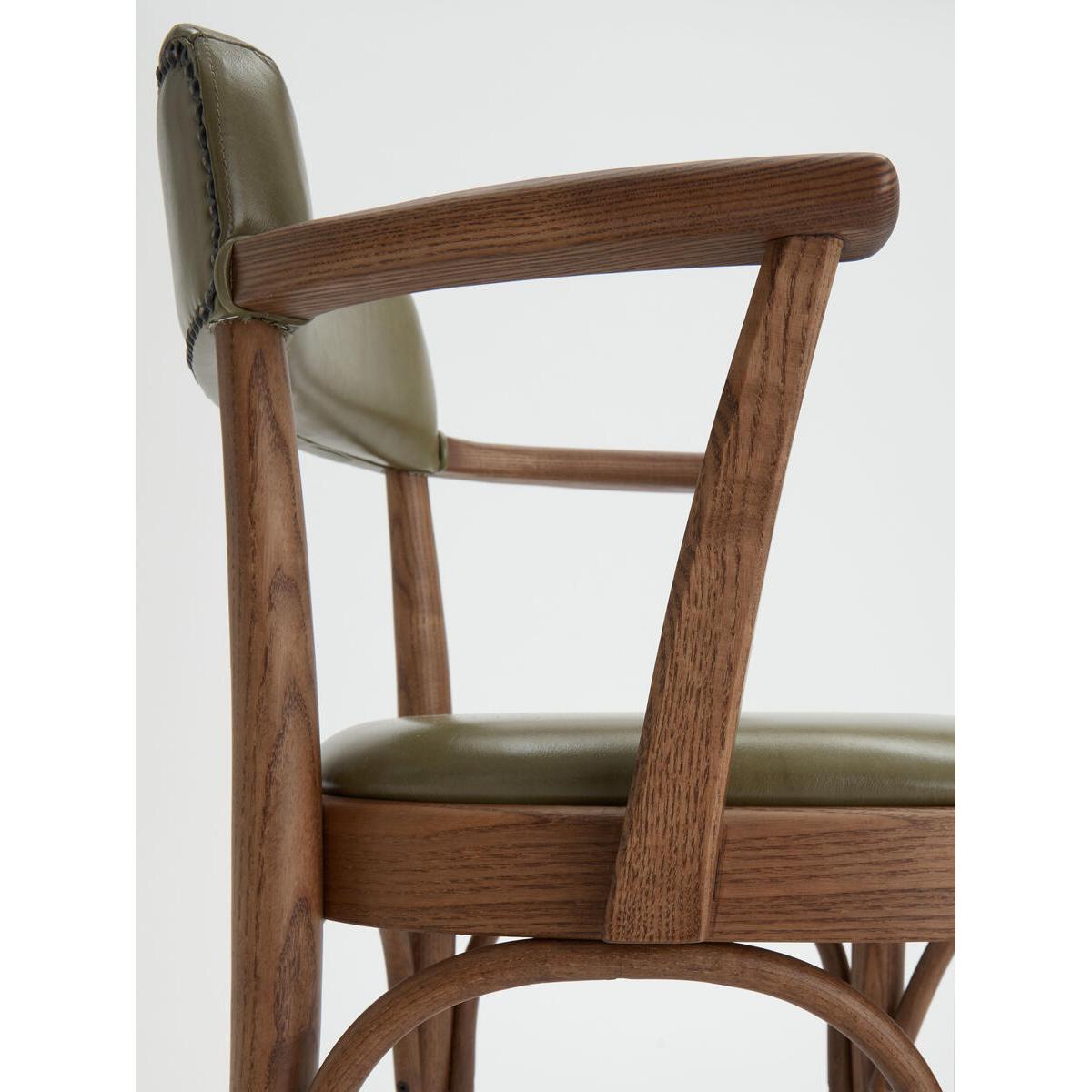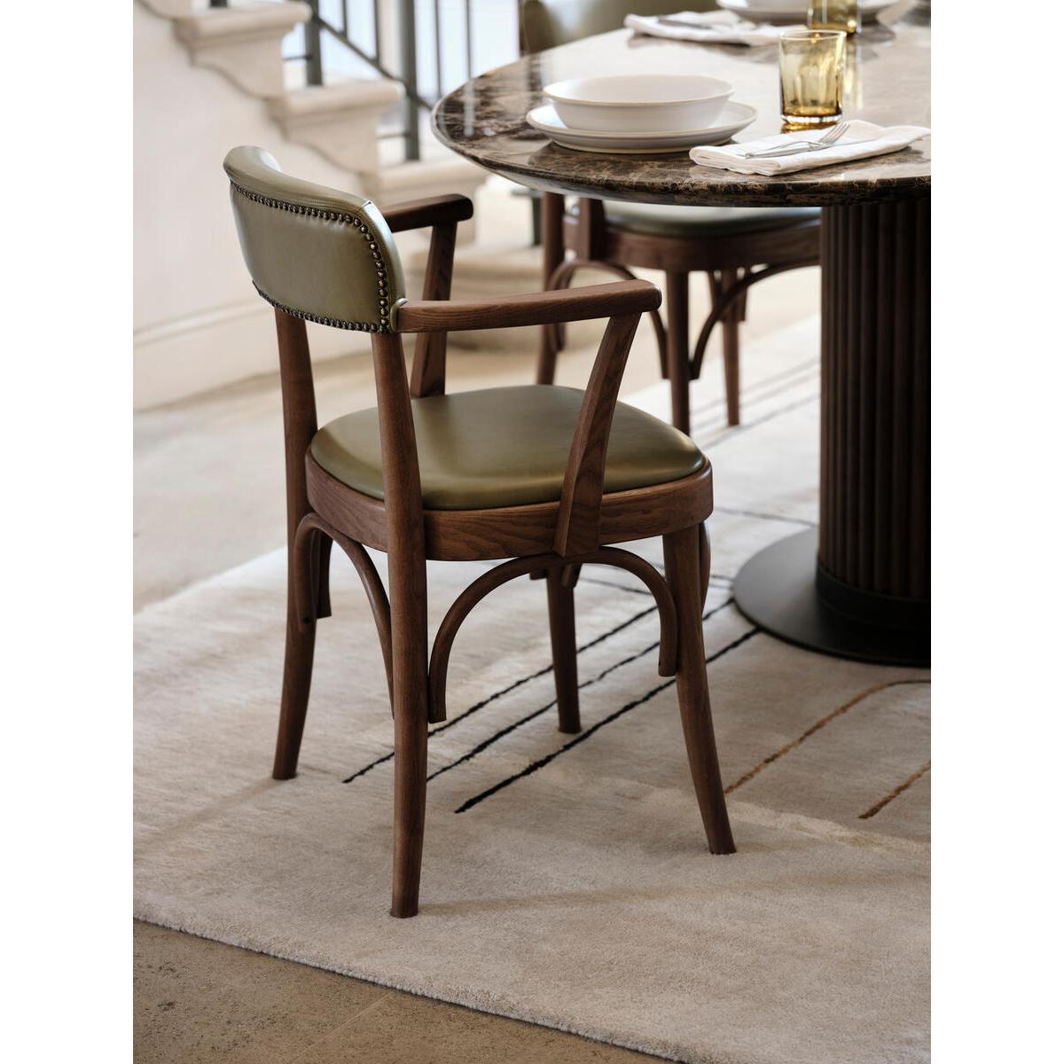 I love how this green-leather ash chair brings warmth and structure to a dining space - the curved arms and deep olive hide feel both comfortable and sculptural. It sits equally well in a Scandi-inspired setting with pale woods and white walls or in a more traditional room alongside a dark-stained table and soft rug. For practical styling, pair it with a simple oak console or sideboard to let the wood grain pop, and add cushions in natural linens or a muted geometric print to soften the look. It’s also sturdy enough to work as a desk chair in a small home office, where a leafy plant and a metal-framed lamp will complete the scheme.