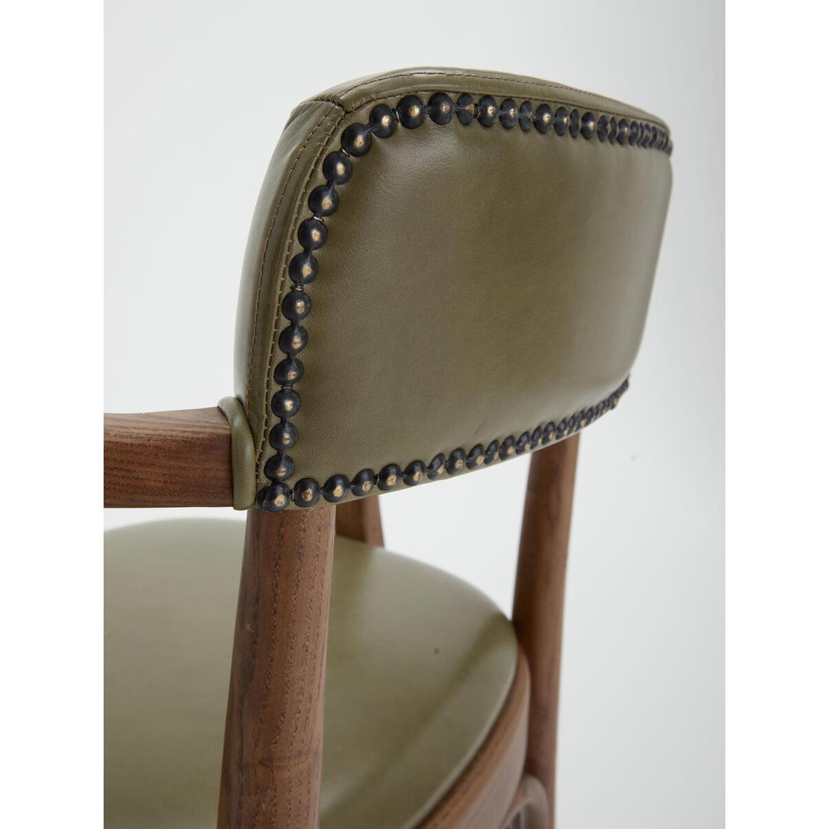 An embodiment of Italian craftsmanship and considered design, the Hamilton dining chair has a solid ash frame and is upholstered in Italian leather. Antique brass studding and an aged mid-tone stain finish give this piece a vintage feel, drawing inspiration from one of Westminster's oldest townhouses and the location of Soho House 76 Dean Street. Green leather dining chair Crafted in Italy from Italian leather Solid ash frame Antique brass studding Aged mid-tone stain Inspired by Soho House 76 Dean Street