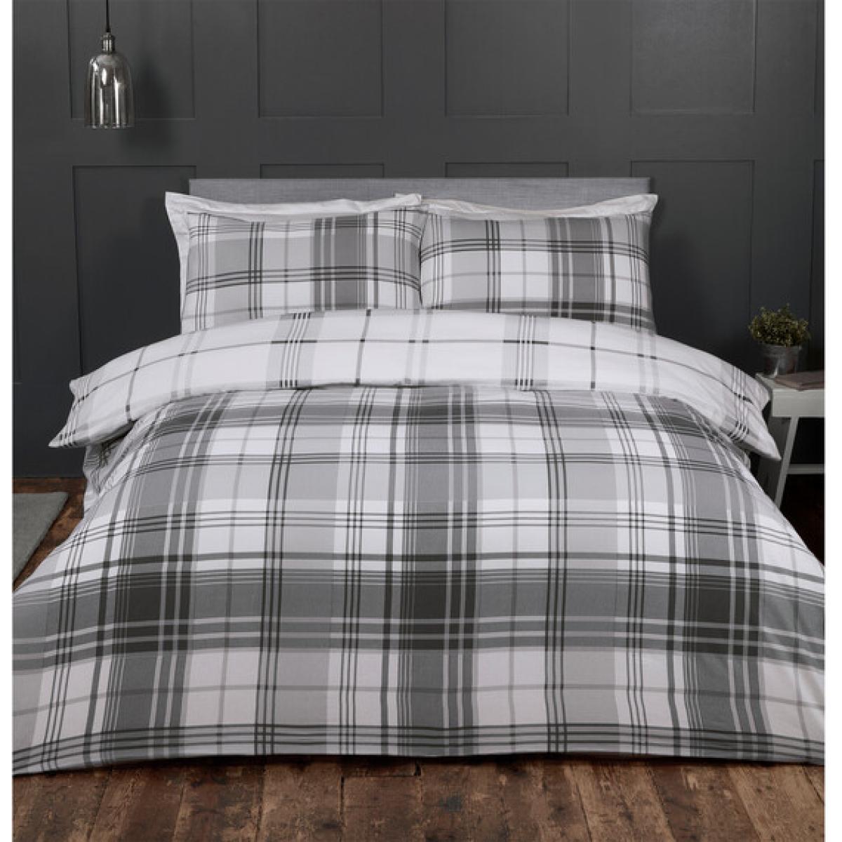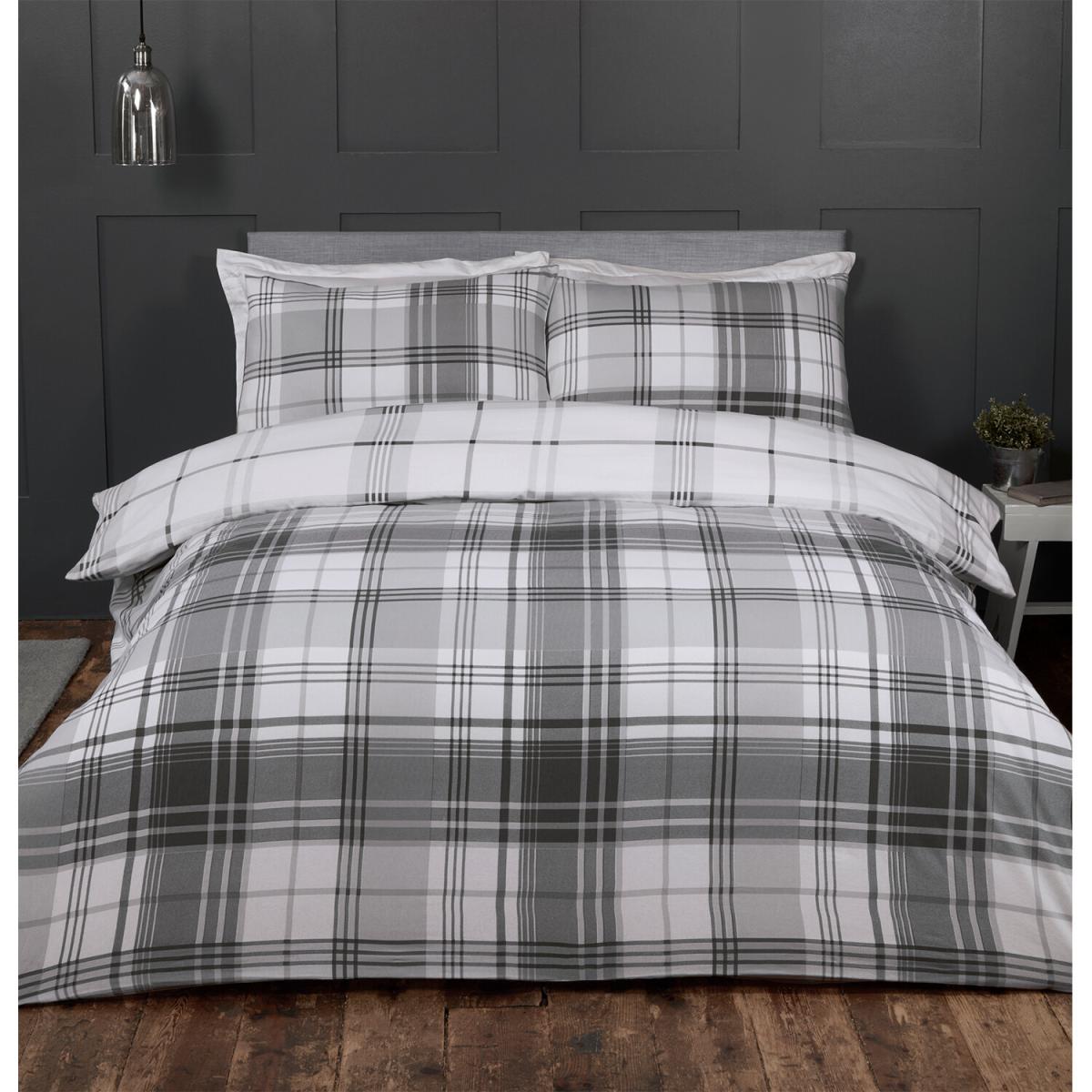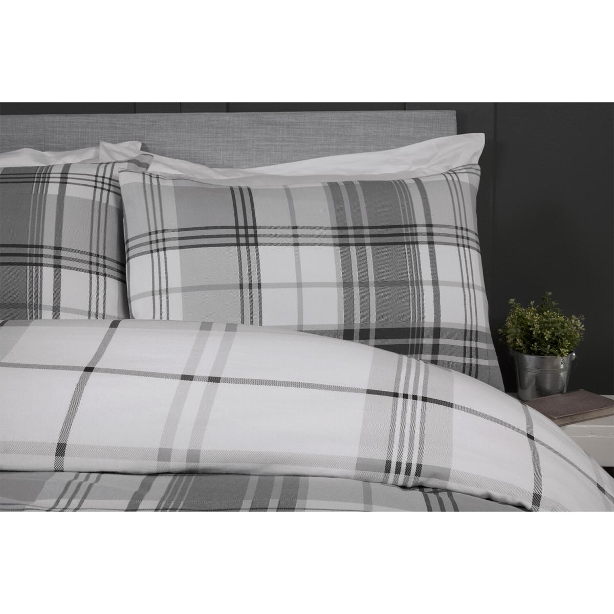 Hamilton Grey Check Duvet Cover and Pillowcase Set - Grey / Single