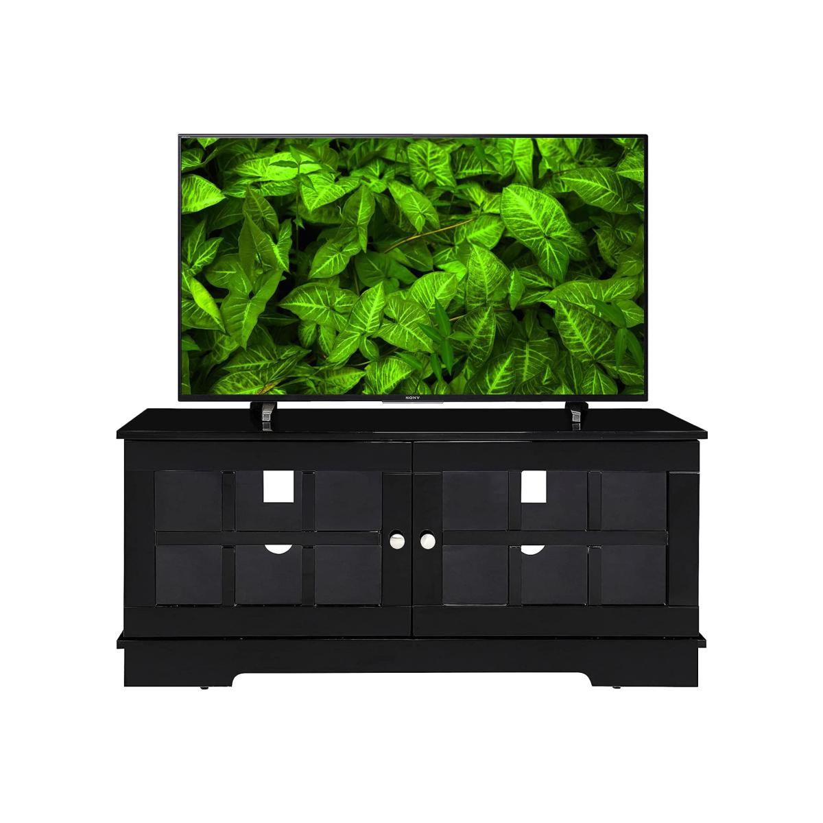 The Hamilton TV cabinet features lattice style glass inlaid doors to add a touch of classic chic to the cabinet. Finished in high gloss piano black with black glass doors with contrasting silver knobs, the stylish design will look perfect in any living room environment complimenting modern screens perfectly. The Hamilton TV stand comes complete with cable management to hide unsightly wires at the rear and clear and concise manual for easy self-assembly. Suitable for all LED, LCD, and OLED flat screen TVs from 26" to 55", The Hamilton entertainment unit comes with space to accommodate most home cinema systems, blu-ray player, Sky/Virgin/BT receivers, amplifiers, digital boxes and games consoles. Dimensions: Width: 110cm / Depth: 40cm / Height: 48cm.