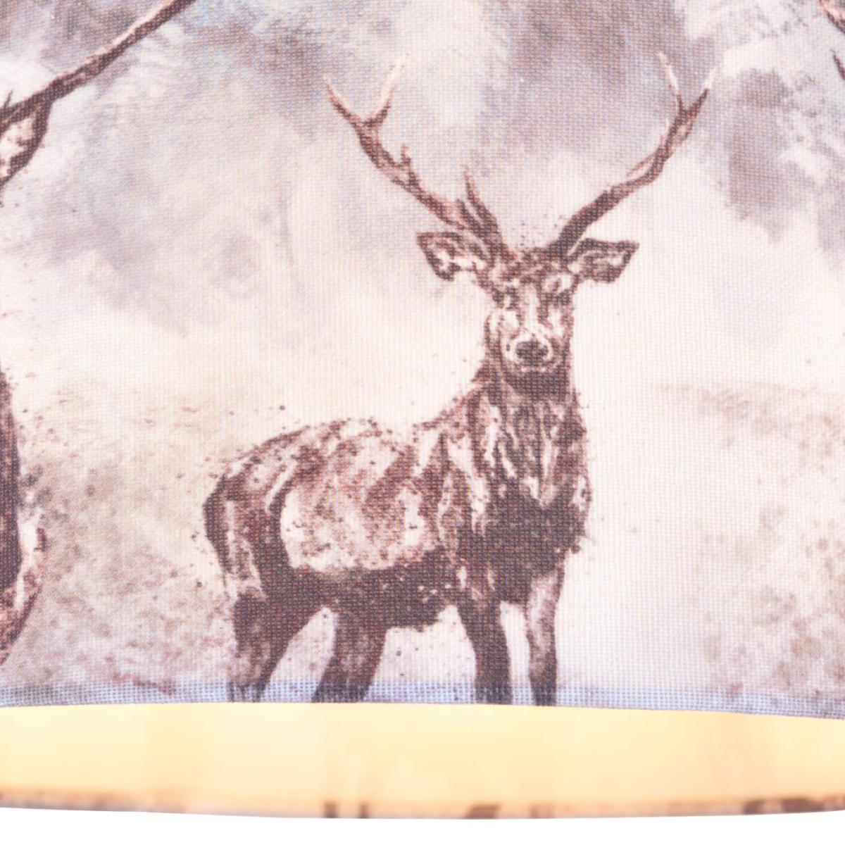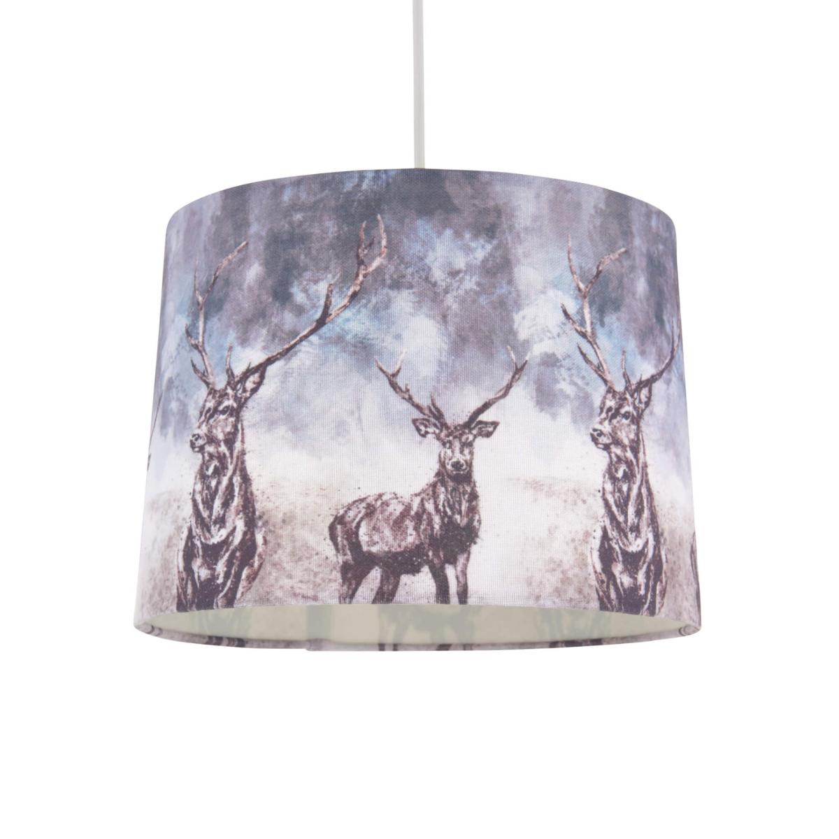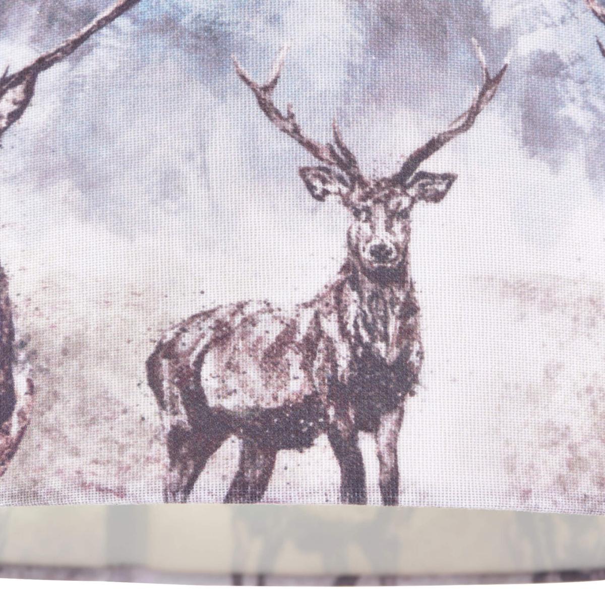 A digitally printed lampshade with a bespoke watercolour painted design. It features stags against a natural setting and will add a distinctive and creative accent to your space. Suitable for both lamp bases and ceiling fittings. A digitally printed lampshade with a bespoke watercolour painted design. It features stags against a natural setting and will add a distinctive and creative accent to your space. Suitable for both lamp bases and ceiling fittings.