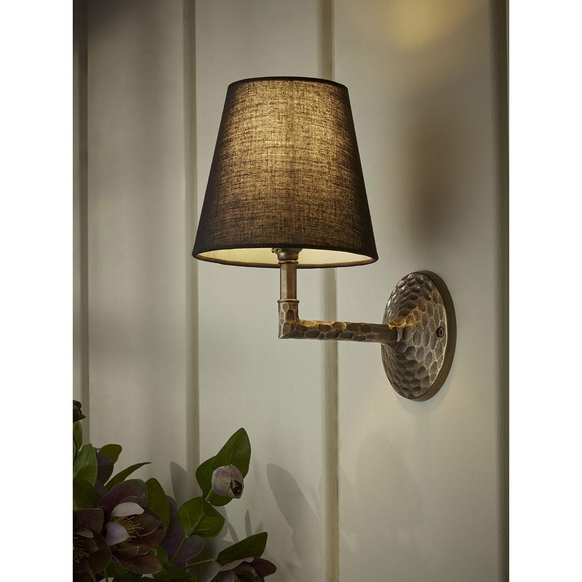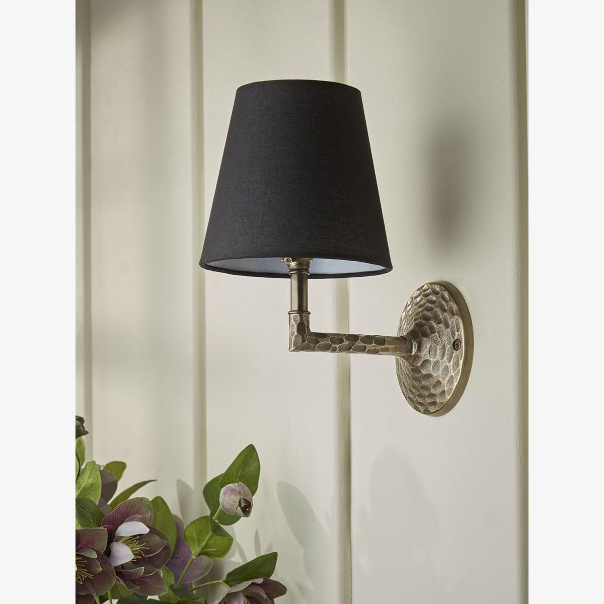 With a simple and sleek black shade, this wall light has a minimalist style that is sure to suit a variety of interior schemes. With an antique brass arm, the hammered brass effect adds a relaxed feel, which creates a gentle, unique detailing when lit. Discover how to create the perfect lighting scheme for your home using our Lighting Buying Guide.