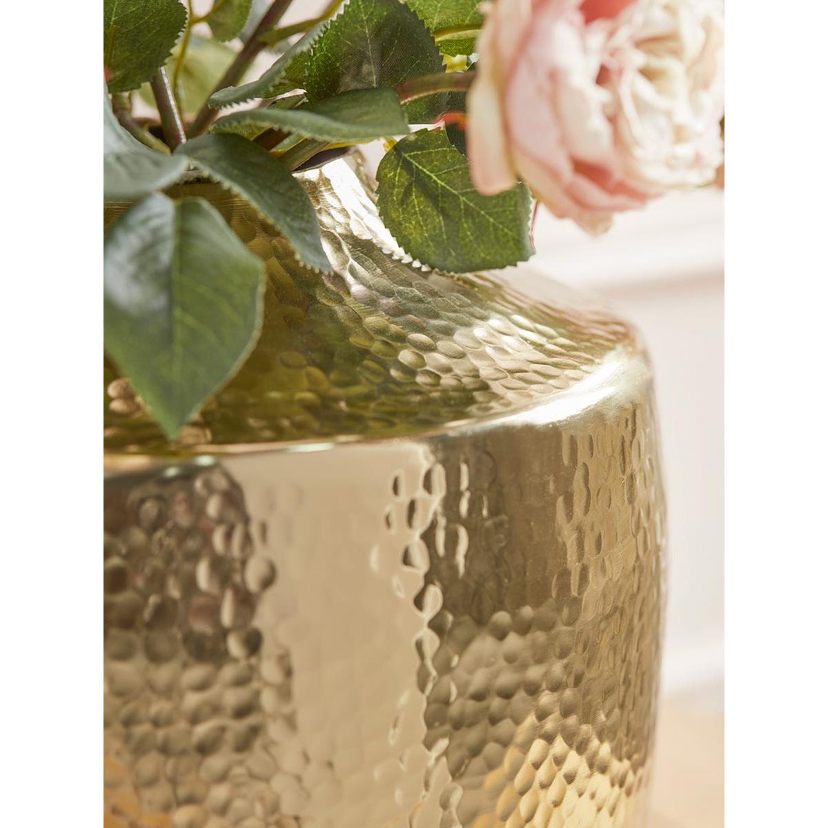 Add some warmth and a luxe injection of colour into your living space with this beautiful burnished brass toned vase. With a deep bowl shape and softly tapered mouth, the gently hammered finish reflects the light to great effect.