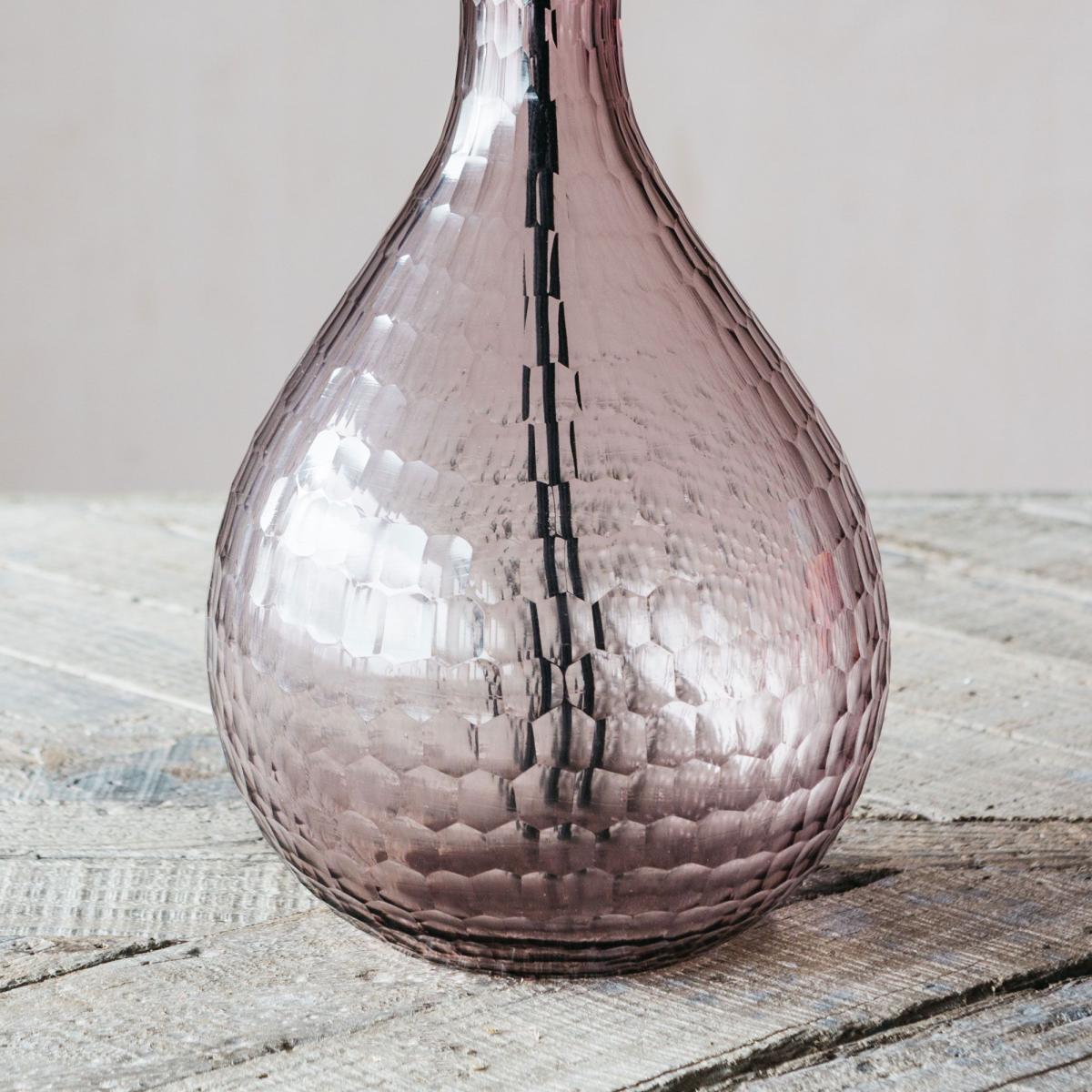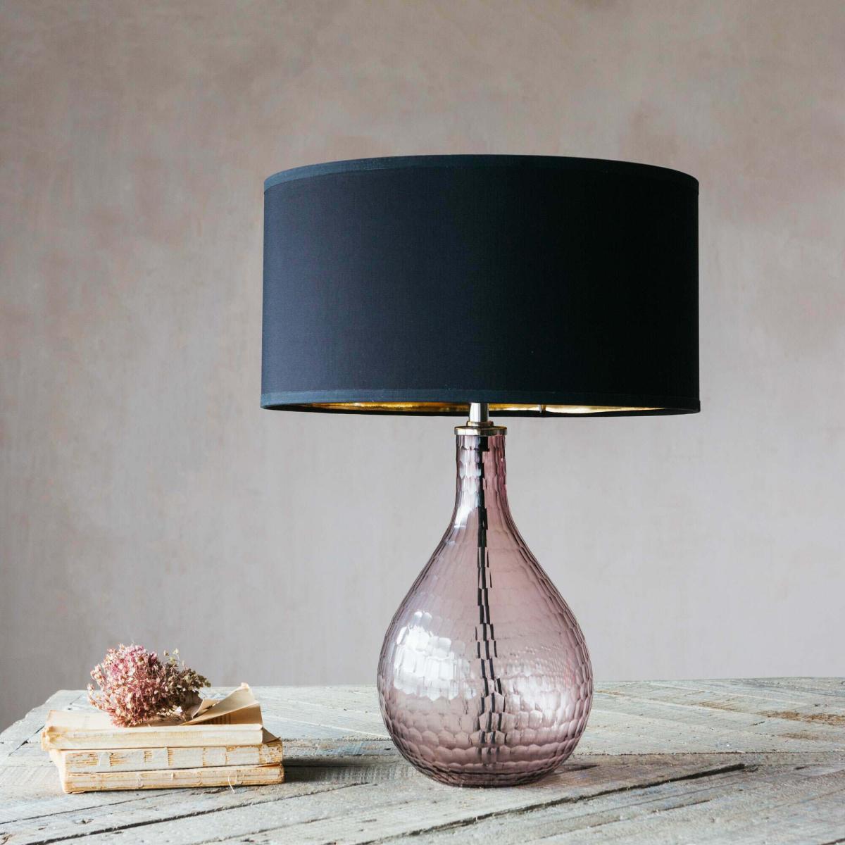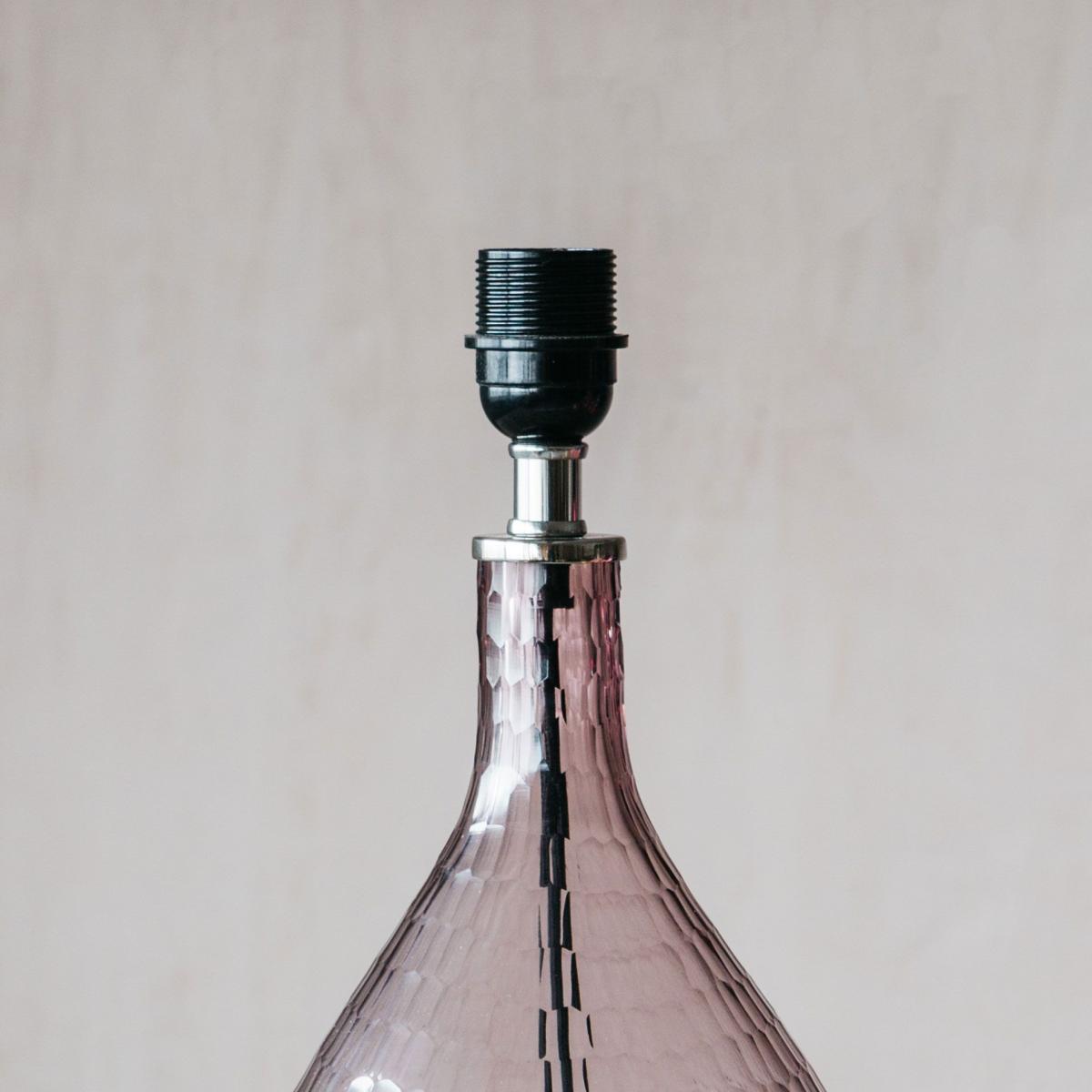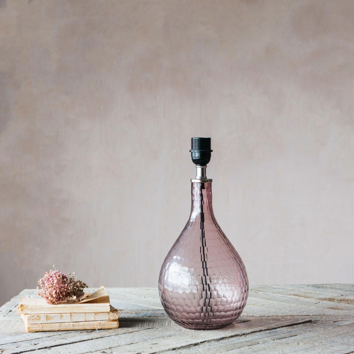 A unique table lamp handcrafted in India from striking pink glass with a hammered, textured finish. Exclusive to G&G in the UK.
