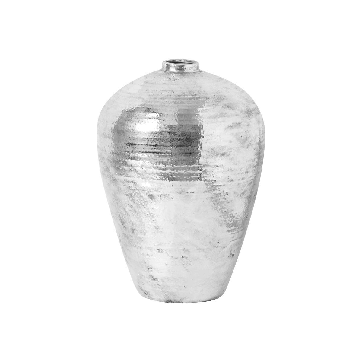 The Hammered silver vase breaks up any interior and gives it a cool, contemporary feel. Its stunning silver finish effortlessly adds texture to your space in a unique way. Why you'll love it. Statement large silver vase. Large and eye-catching design. Versatile silver finish that fits any interior. An effortless way to layer extra textures into a space. What you need to know. Made from ceramic. Dimensions. Height: 57 cm (23 in). Width: 40 cm (16 in).