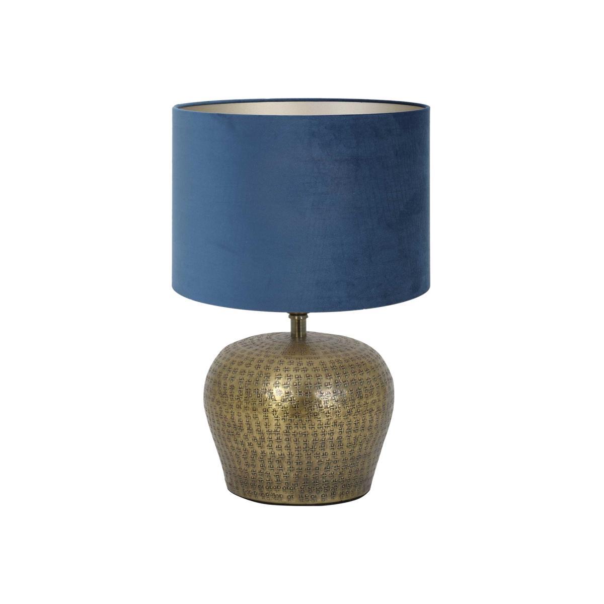 A beautiful blend of modern elegance and vintage charm, the Hammered Table Lamp features stunning brass and rich blue hues. In antique gold with all-over embossed detailing, the base has a simple, rounded design that sits well within both contemporary and traditional interiors. The blue lampshade is understated and classic, complementing the base’s gorgeous metallic finish and allowing it to shine. Placed beside the bed, nestled in a quiet study c