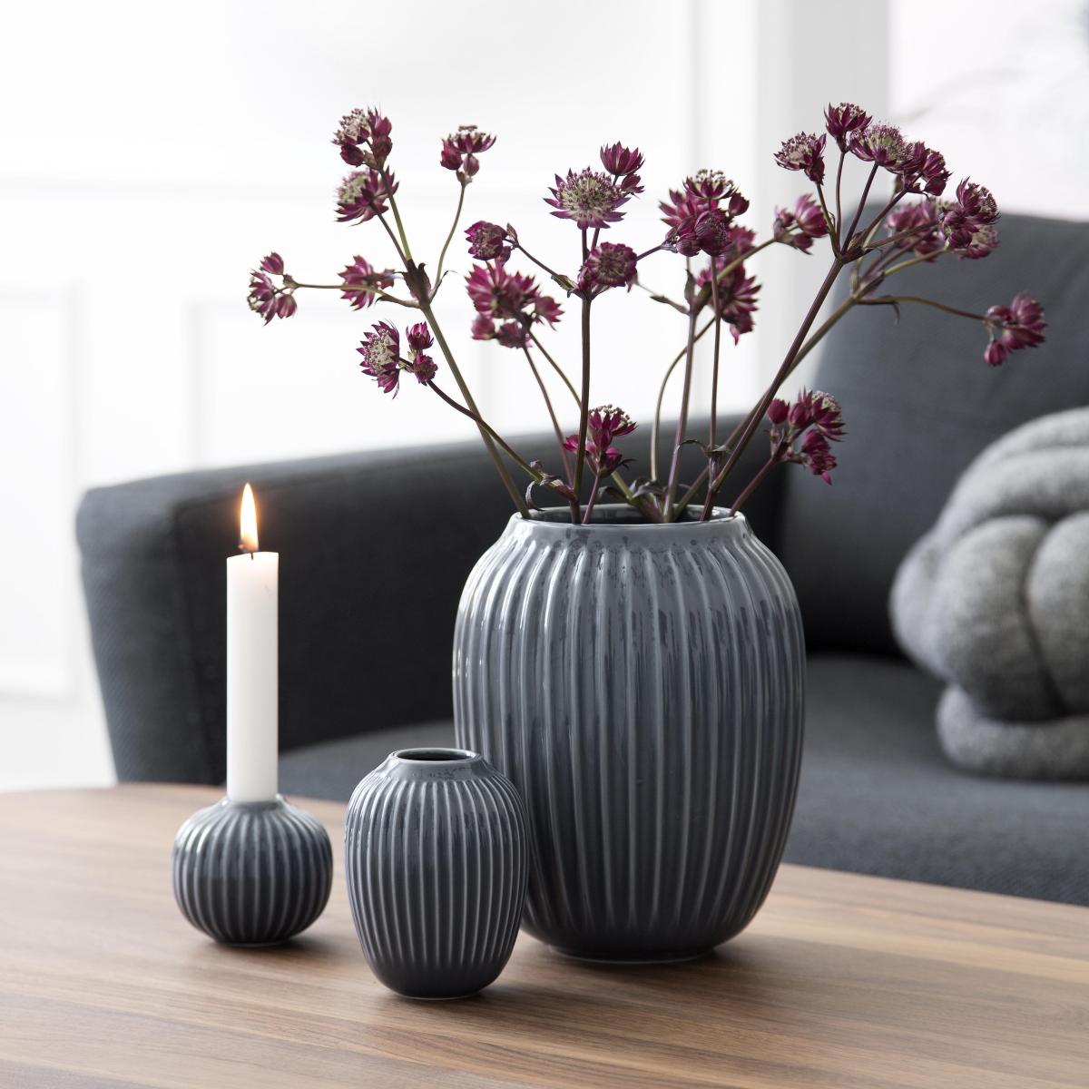 The Hammershøi candleholder medium by Kähler is designed by Hans-Christian Bauer but directly inspired by Svend Hammershøi who worked at Kählers old workshop during the early 19th century. Hammerhøi was mostly known for his voluminous vases with distinctive furrows and you can clearly see the same idiom on this elegant candleholder. Match it with other candleholders in the Hammershøi collection!.