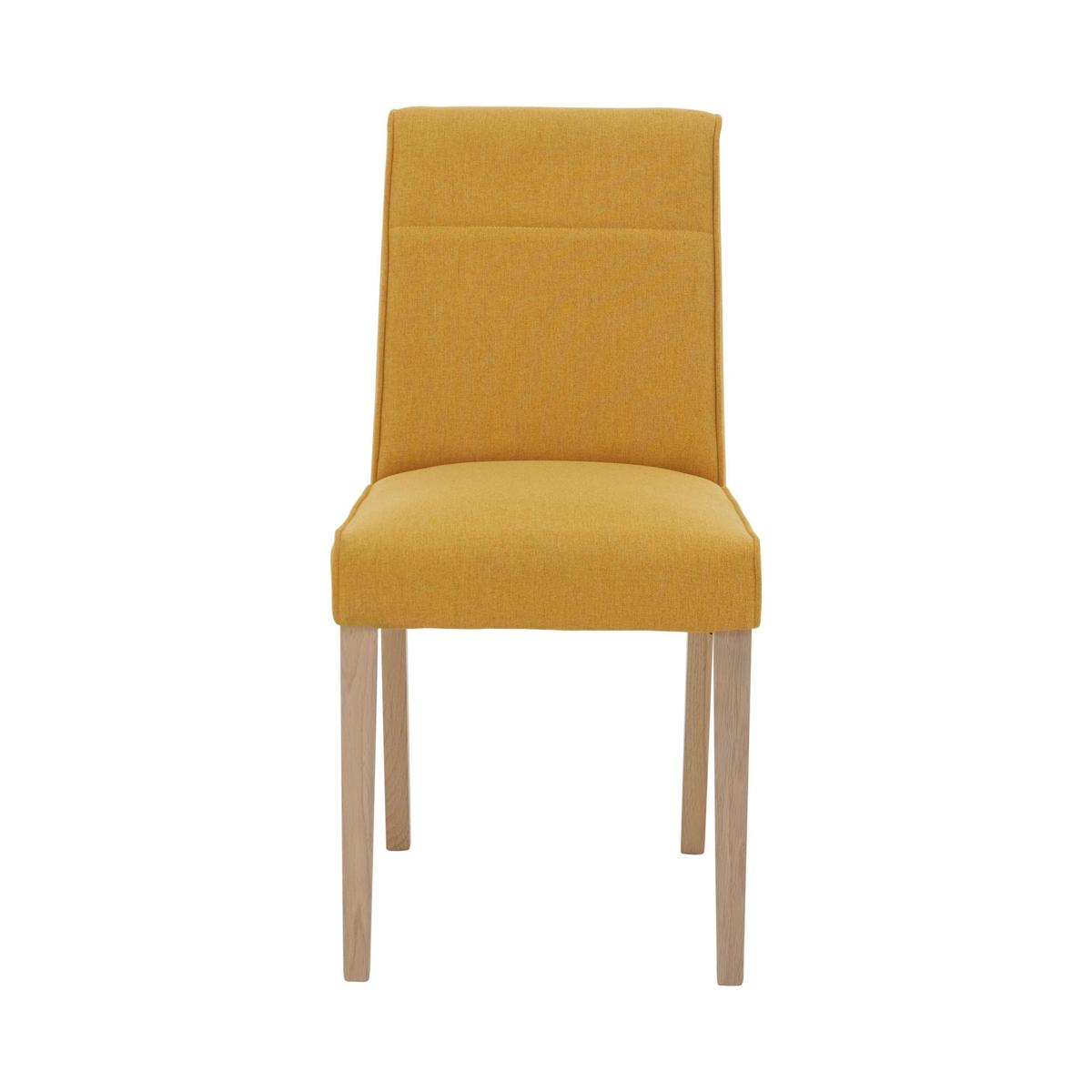 Comfortable and contemporary, solid and sturdy. The fabulous Hammersmith collection of living and dining room furniture ticks all the boxes. Pieces are crafted from solid wood and feature solid oak tops with beautiful butcher block-style patterning, smooth chamfered edges and square-edged legs. The dining table is available in two sizes and extends with optional leaves. Versatile seating comes in the form of dining chairs upholstered in three colours and two sizes of dining bench. Complete the look with well-crafted occasional tables and a sideboard. Fabulous oak furniture with stylish contemporary lines. Fully upholstered dining chair in a choice of three colours. High-quality construction at a great-value price. Whether it's a family meal time, a casual dinner or a full-scale celebration meal, there’s no more comfortable and stylish chair than the Hammersmith dining chair. Beautifully cushioned and upholstered, this on trend dining chair combines comfort and support with fashionable details and upholstery choices. Available in a choice of three fabric colours – this season's favourite mustard, light and dark grey – chairs are deeply cushioned and have wooden legs. Chair backs are embellished with horizontal stitching, subtle yet stylish. Crafted with solid wood frames, these sturdy chairs are designed to be paired with the Hammersmith dining table. Available in two sizes and featuring a solid oak top with butcher block detail and smooth lacquered finish, this versatile dining table with optional extension leaves is the perfect piece for both dining rooms and kitchen diners. The great-value Hammersmith dining chair is part of the extensive Hammersmith collection of dining room and living room furniture. Did you know?. Because oak is natural with characterful knots and markings, no two pieces in the Hammersmith collection will be the same.