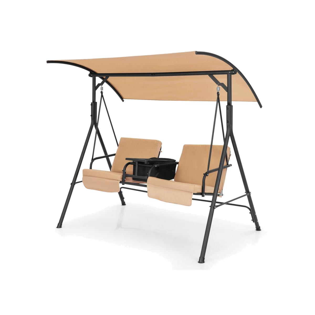 Enjoy outdoor leisure time for two with our 2-seat patio canopy swing. The loveseat swing is designed with an adjustable canopy, which is large enough to cover you and your partner. It will protect you from scorching sunlight, offering a comfortable relaxing experience. And do you want to have cold drinks outdoors at any time Our cooler bag design is special for you! You can store your drinks or snacks in the bag between the two seats, keeping them cool for a long time. Hammock Bench Chair with Center Tray - Brown