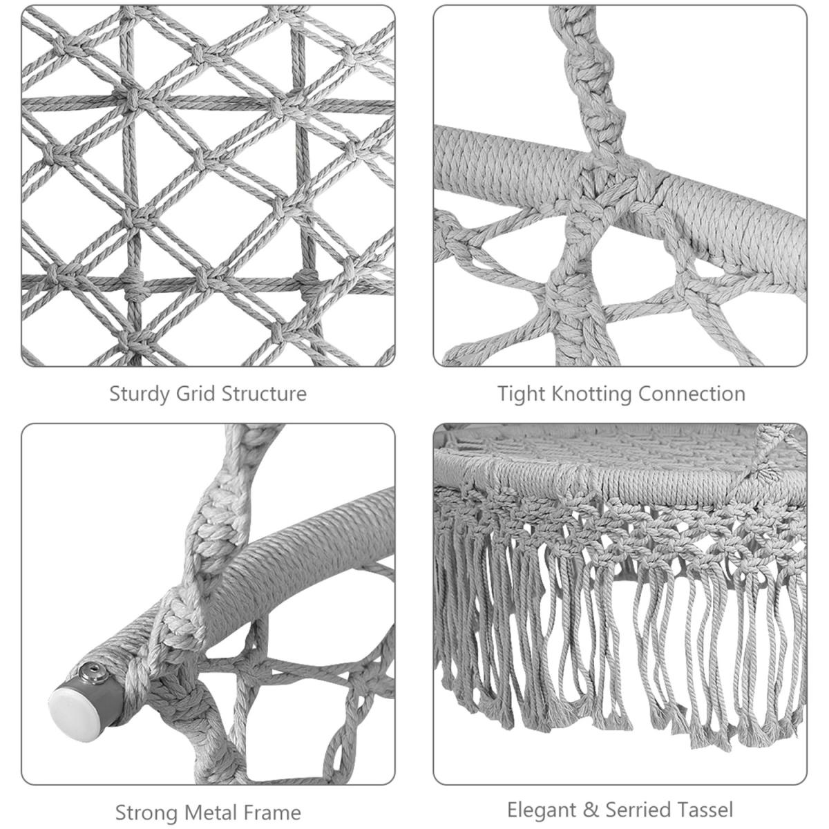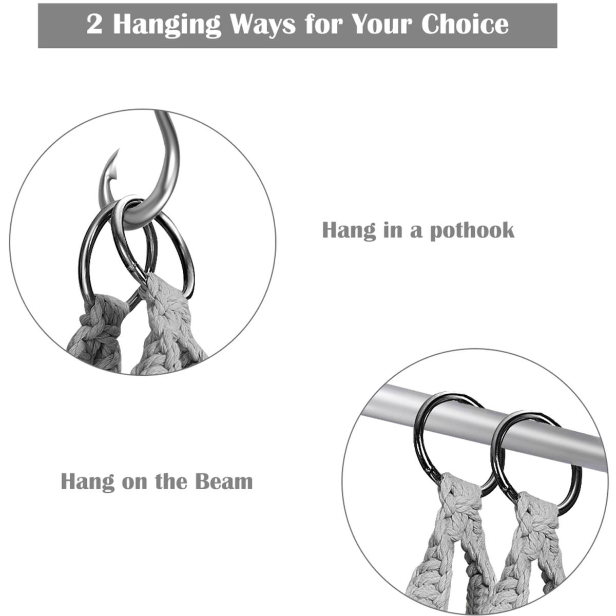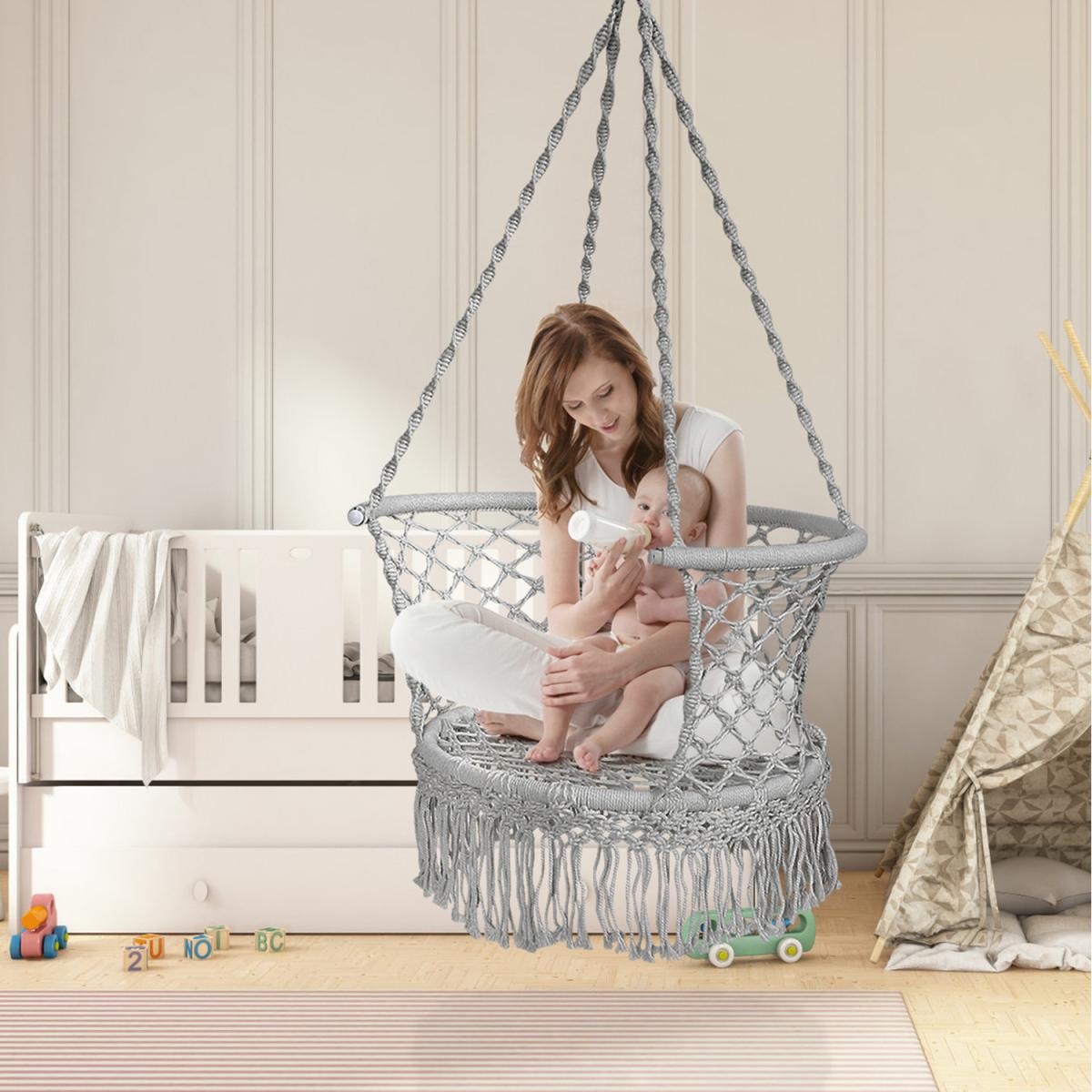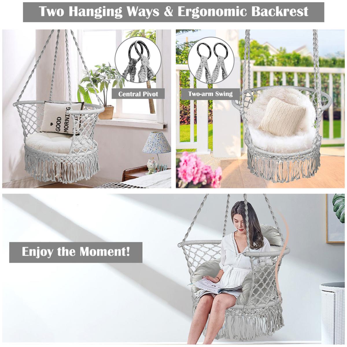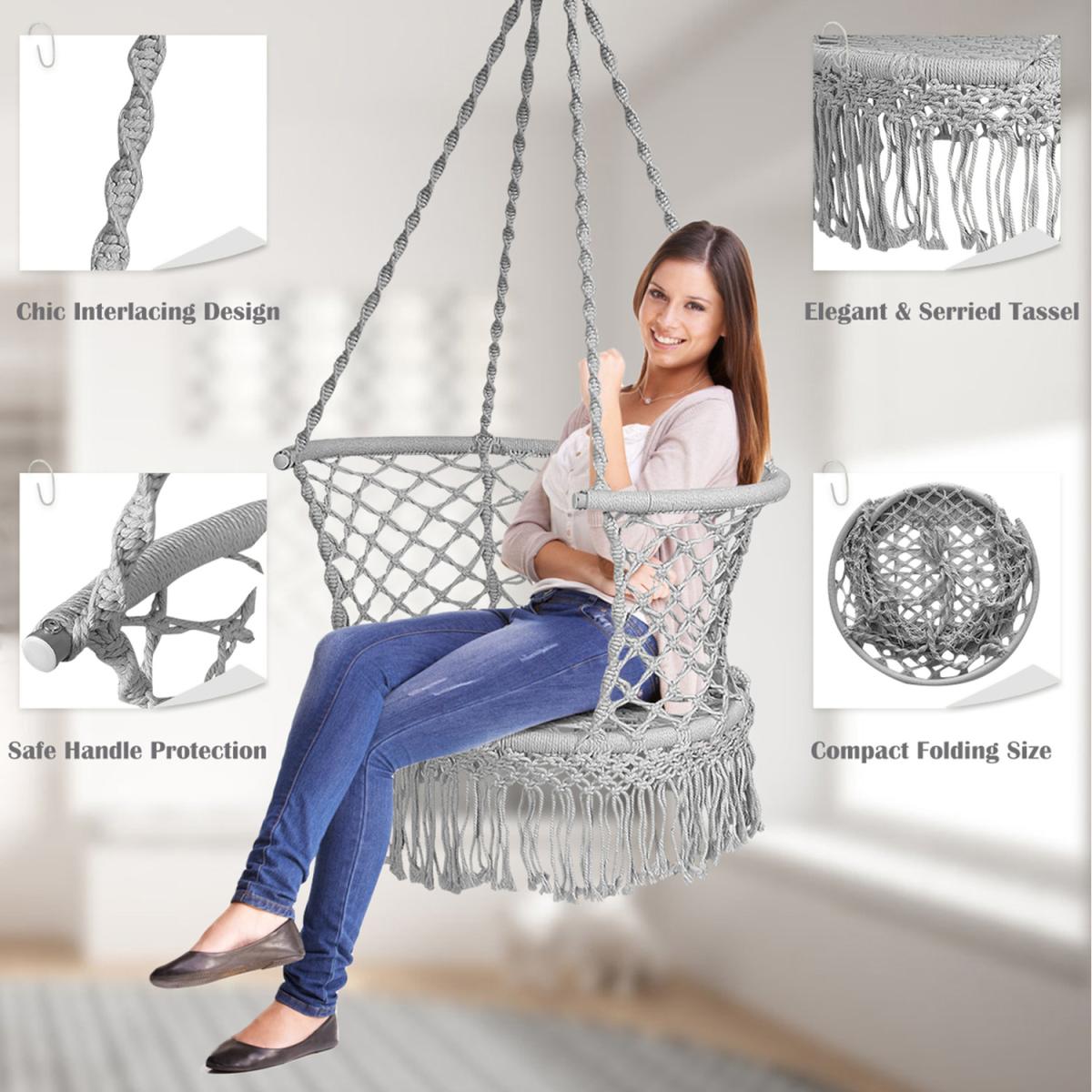 This hammock swing chair will be your best gift for enjoying your free time!It is perfect for reading, sipping your favorite beverage, shooting the breeze with your best friends or family, watching the sunrise or sunset and just hang it in your backyard and enjoying your life. Don't worry about safety, it is firm enough to hold a person under 160kg. And the ergonomic design provides you with a comfortable using experience. So sit down, in this quiet time, and let your troubles disappear with a gently swing chair.