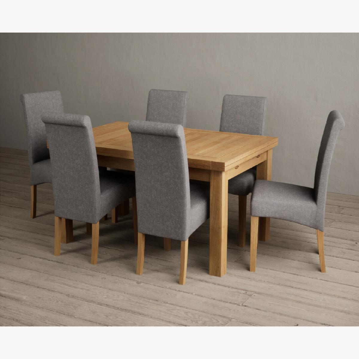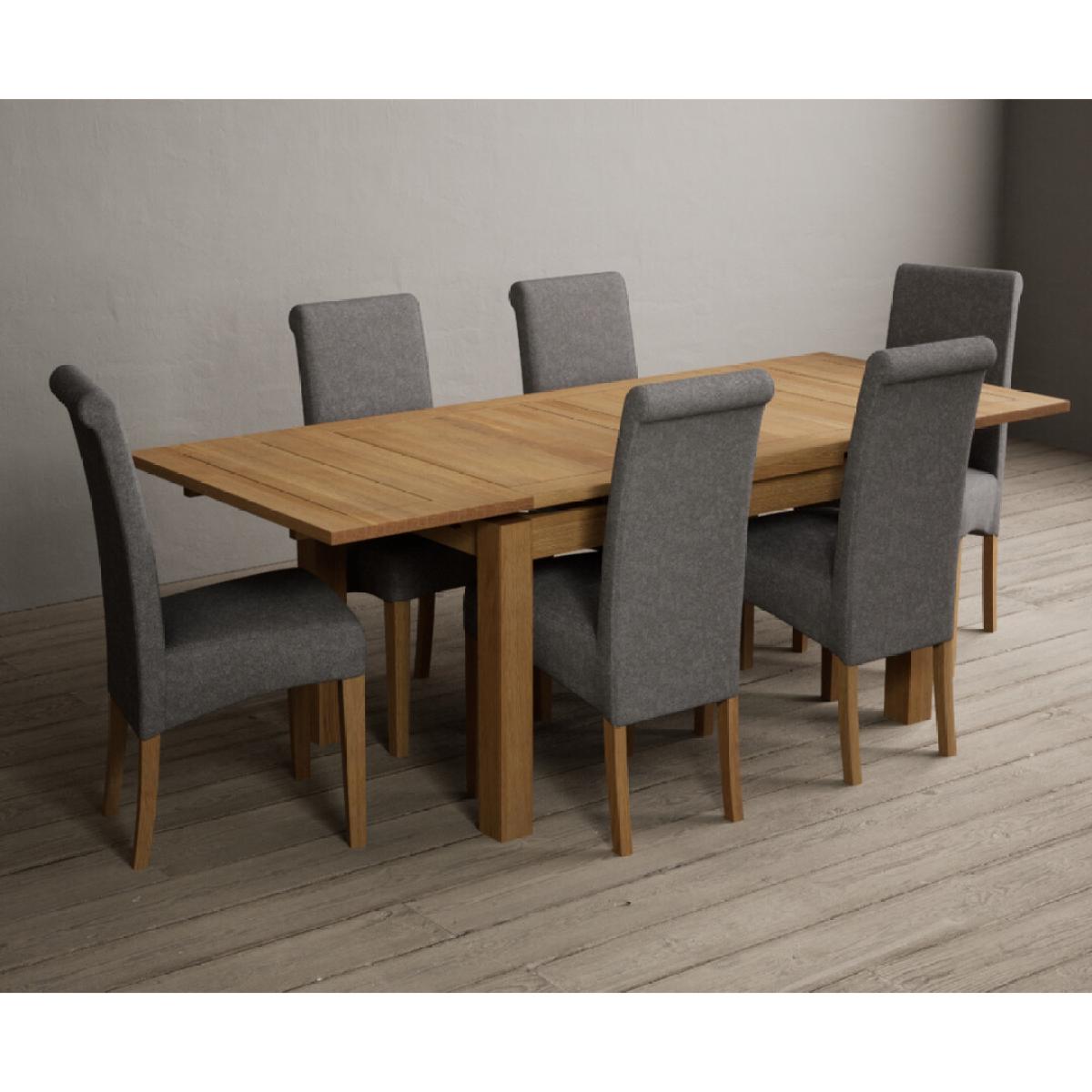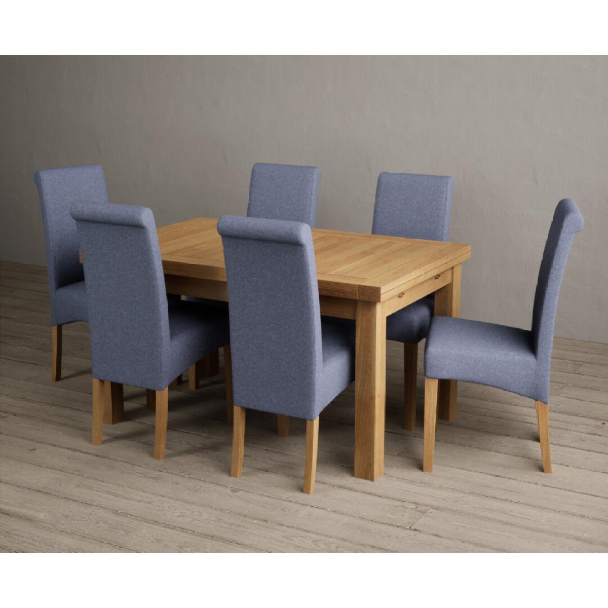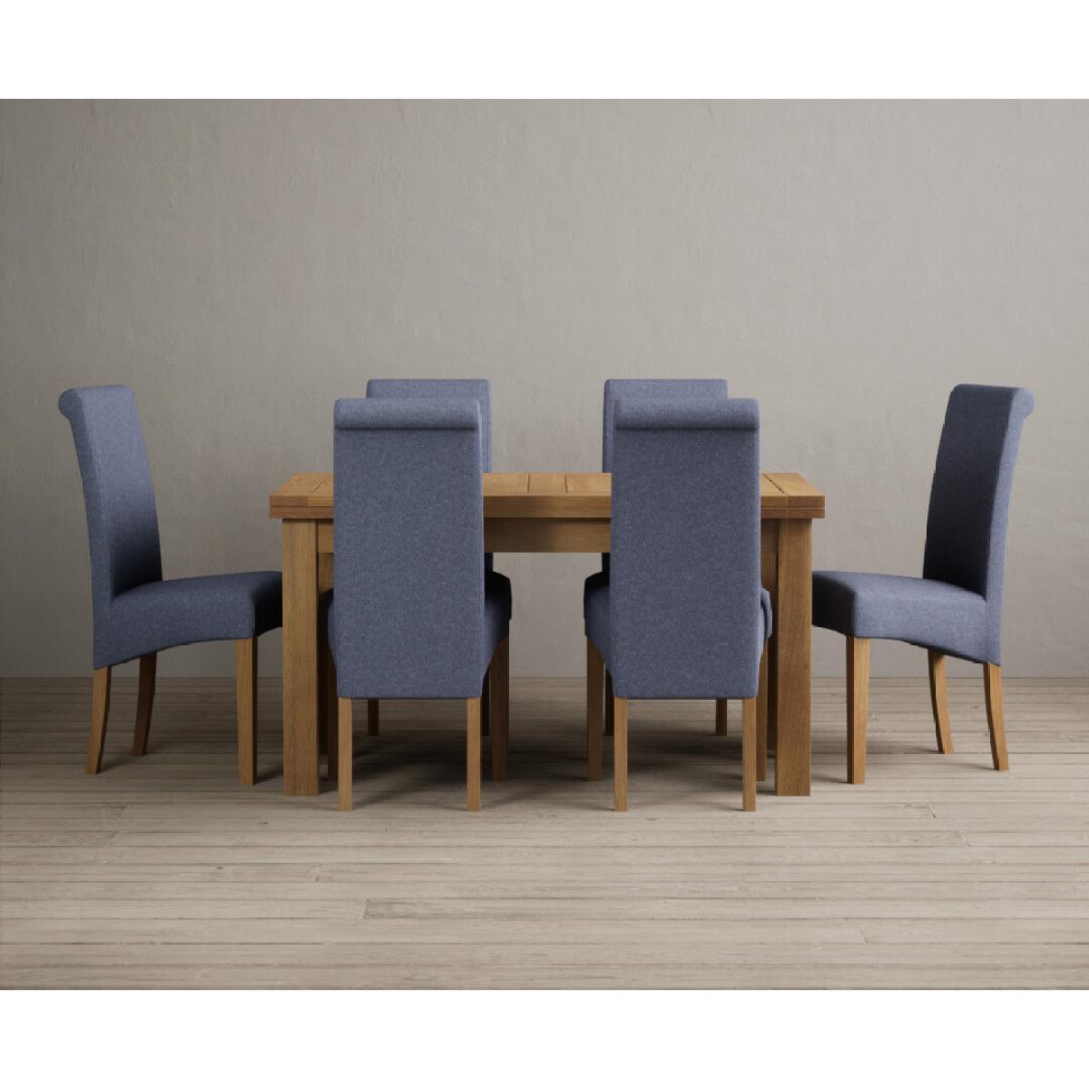 I love this table set for its timeless appeal and versatility. The Hampshire’s solid oak table offers a natural, warm focal point that works well in both contemporary and traditional interiors, while the six blue scroll back chairs inject a touch of character and colour. It’s a practical choice for family meals or entertaining, and the extending feature makes it adaptable for larger gatherings. For styling, consider pairing it with neutral or pastel walls to let the natural oak and blue pop, and complement with soft textiles like linen or wool throws for added comfort. To create a cohesive look, incorporate some wooden accents or soft seating in the same colour family, and perhaps some greenery for a fresh finish. This set works particularly well in open-plan kitchens or dining areas with a relaxed, inviting atmosphere.